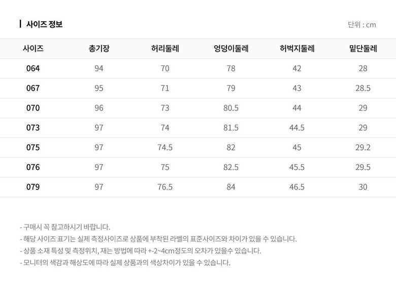 3. 치수 064/067/070/073/076/079/082