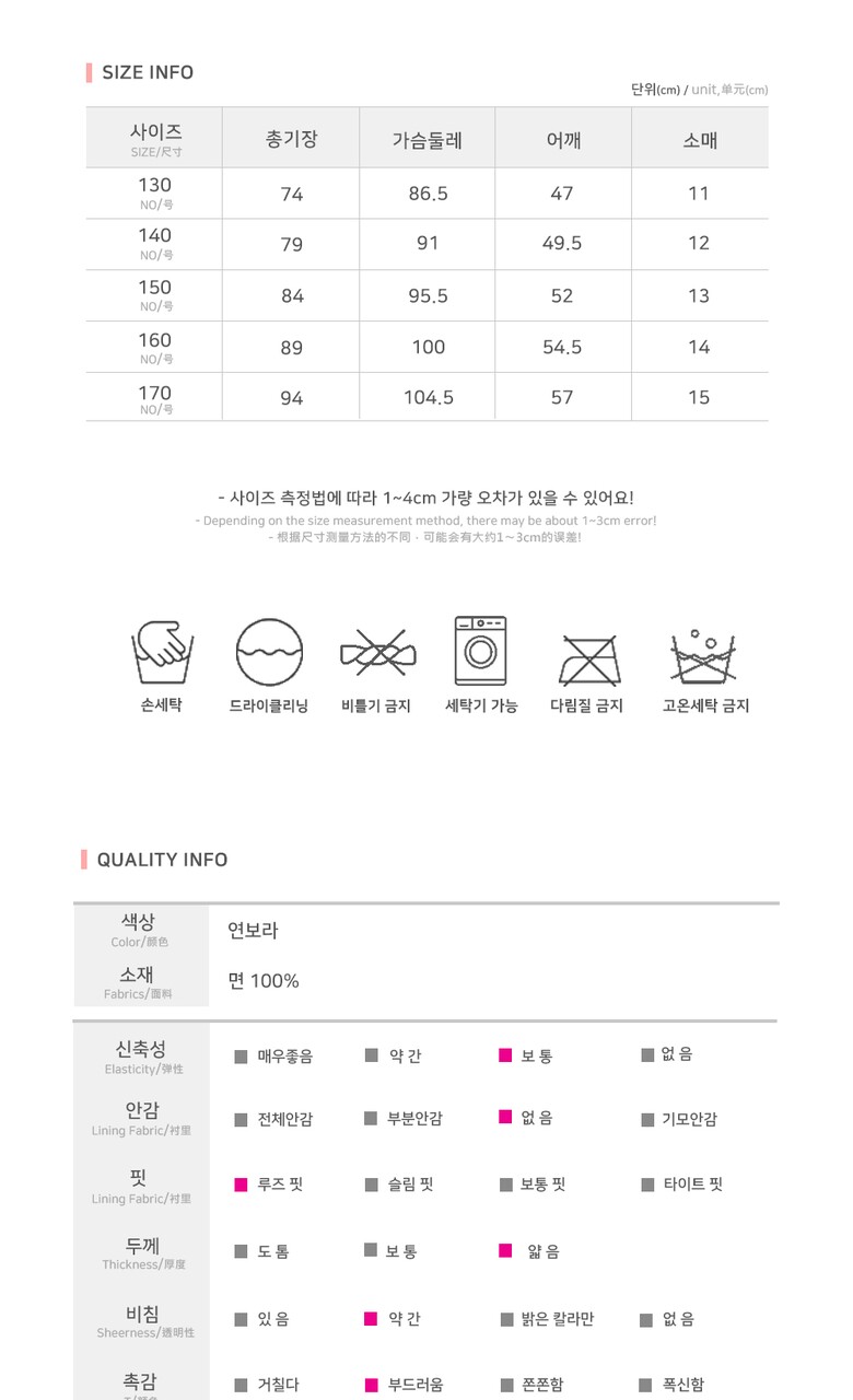 6. 세탁방법 및 취급시 주의사항 상세페이지 내 기재