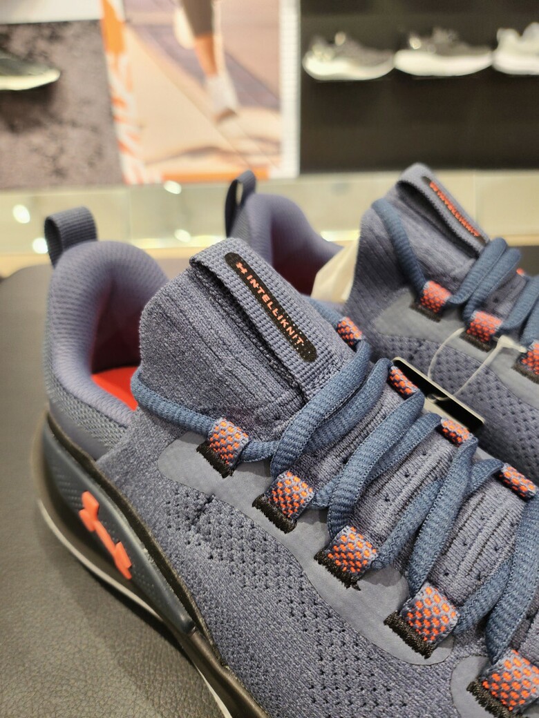 UA IntelliKnit 어퍼가 가볍고 편안한 착용감을 선사하며 꼭 필요한 부위에 전략적인 신축성과 지지력, 통기성을 제공합니다.