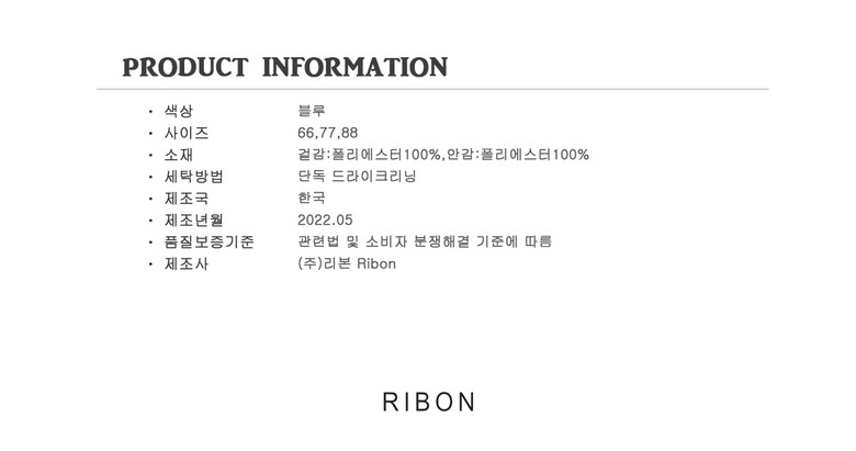 1. 제품 소재 (섬유의 조성 또는 혼용률을 백분율로 표시, 기능성인 경우 성적서 또는 허가서) | 겉감:폴리에스터100%,안감:폴리에스터100% |