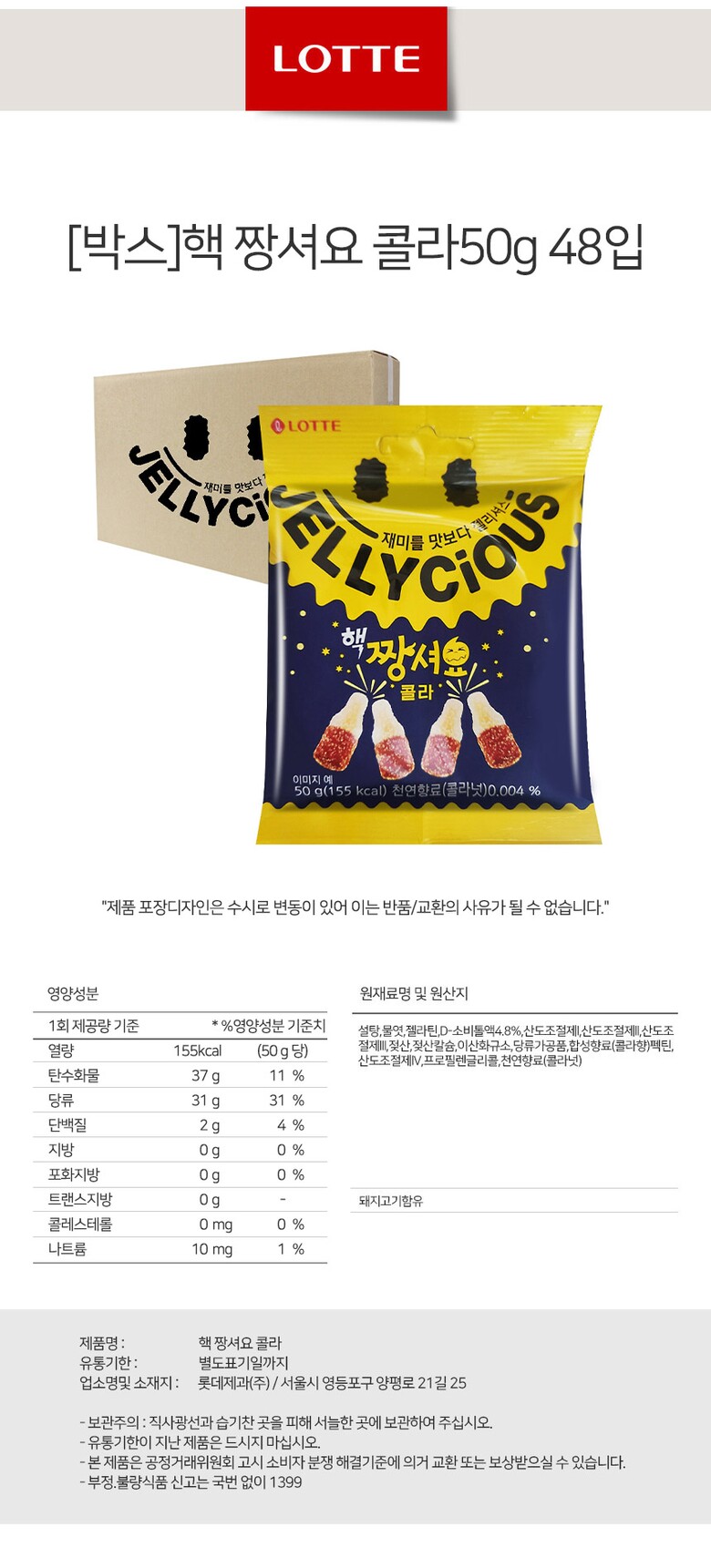 롯데 박스 핵 짱셔요 콜라 50g 48입 젤리