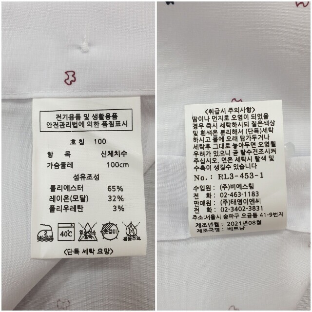| 1. 제품 소재 (섬유의 조성 또는 혼용률을 백분율로 표시, 기능성인 경우 성적서 또는 허가서) | 상품상세참조 |