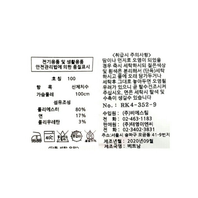 | 6. 세탁방법 및 취급시 주의사항 | 상품상세참조 |