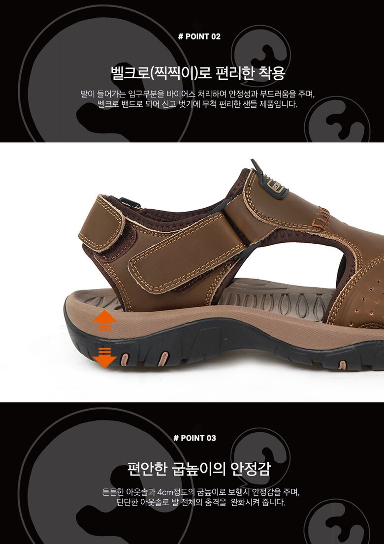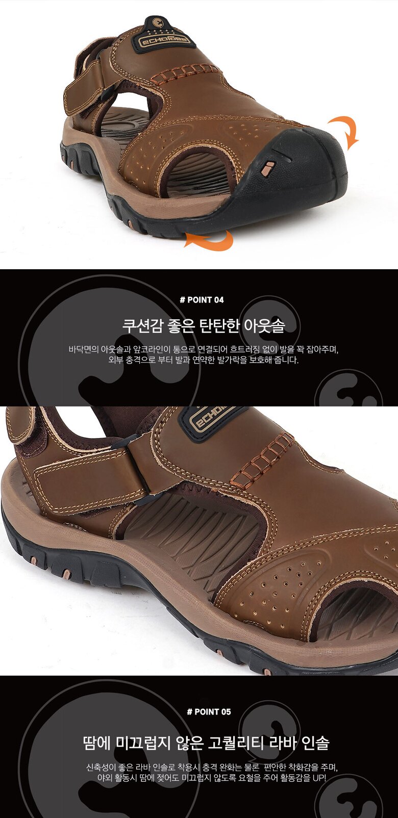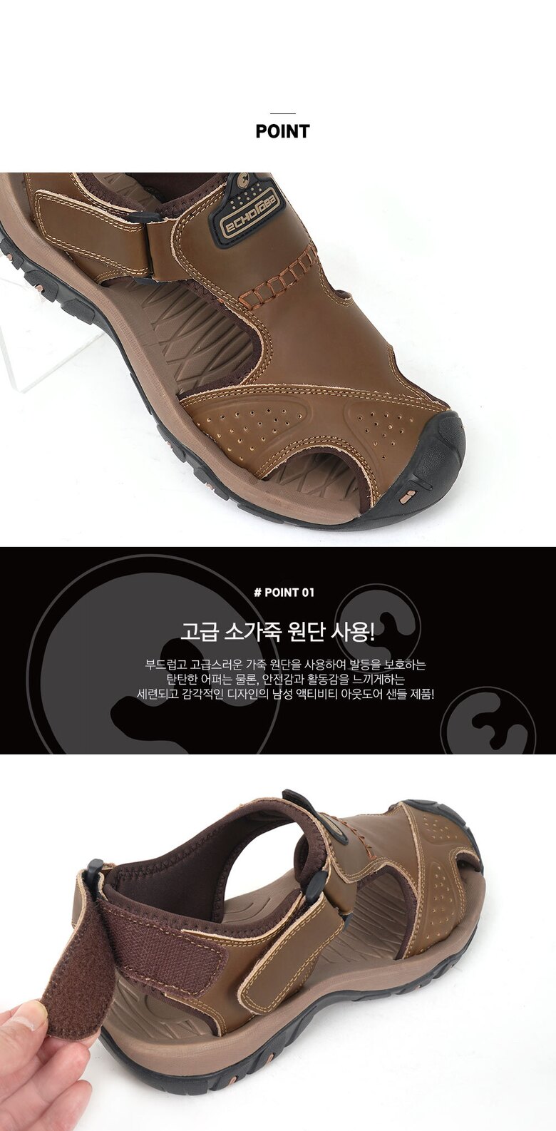 [에코로바]고급 소가죽 고탄성 액티비티 남성 트레킹 샌들 ER0800