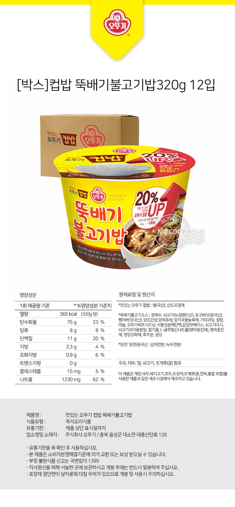 해당 상품은 [ [박스]컵밥 뚝배기불고기밥320g 12입 ] 구성의 상품입니다.