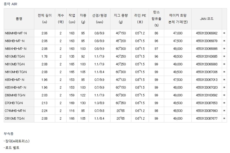 해당 상품은 [ 코우가 에어 N69HB-MT?N ] 모델의 상품입니다.