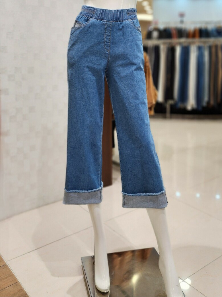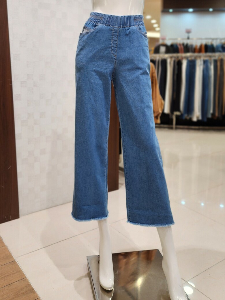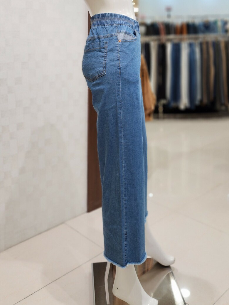 정면 컷팅 일자 와이드핏 밴딩 청바지