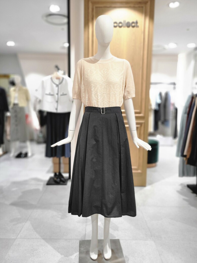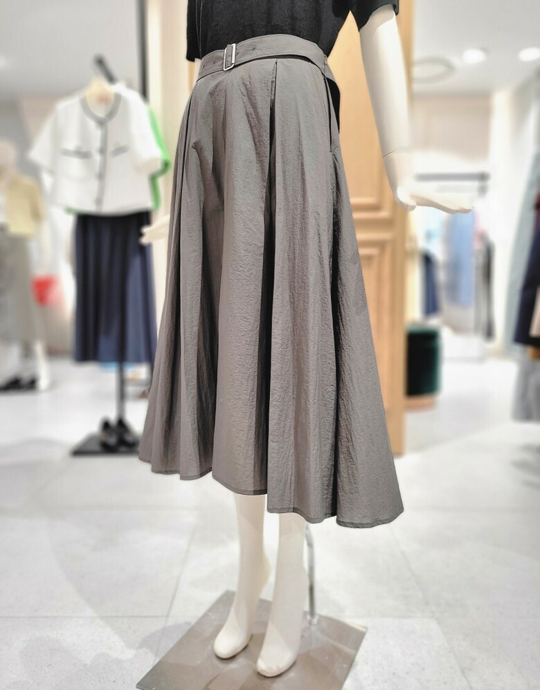 씨씨콜렉트 핀턱 백 밴딩 벨트 플레어 롱 스커트 E233MSD106