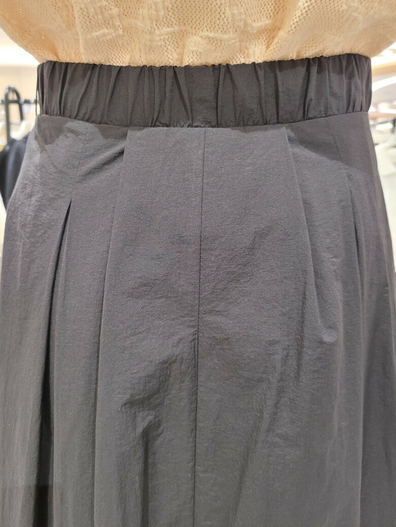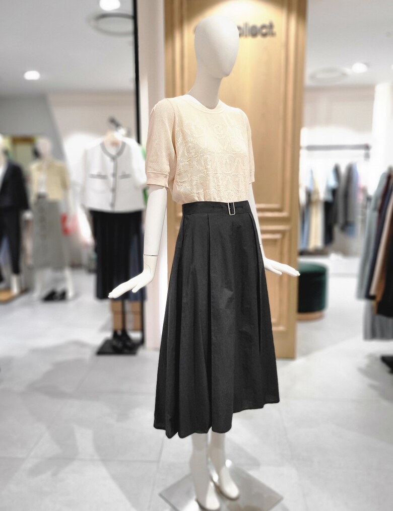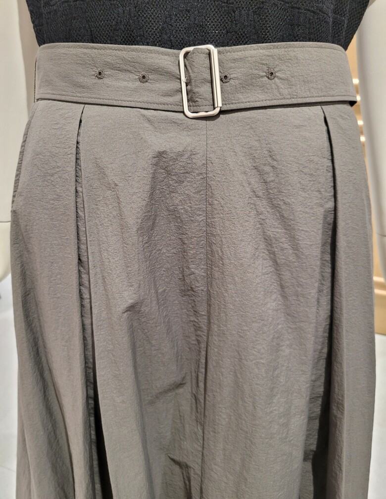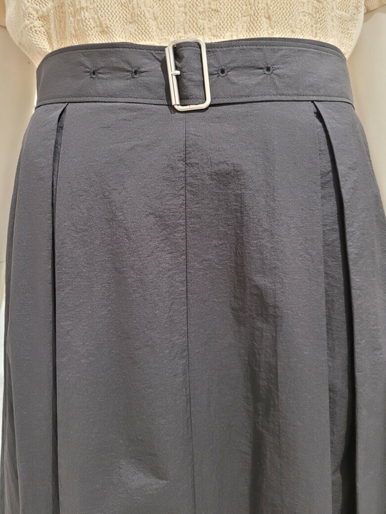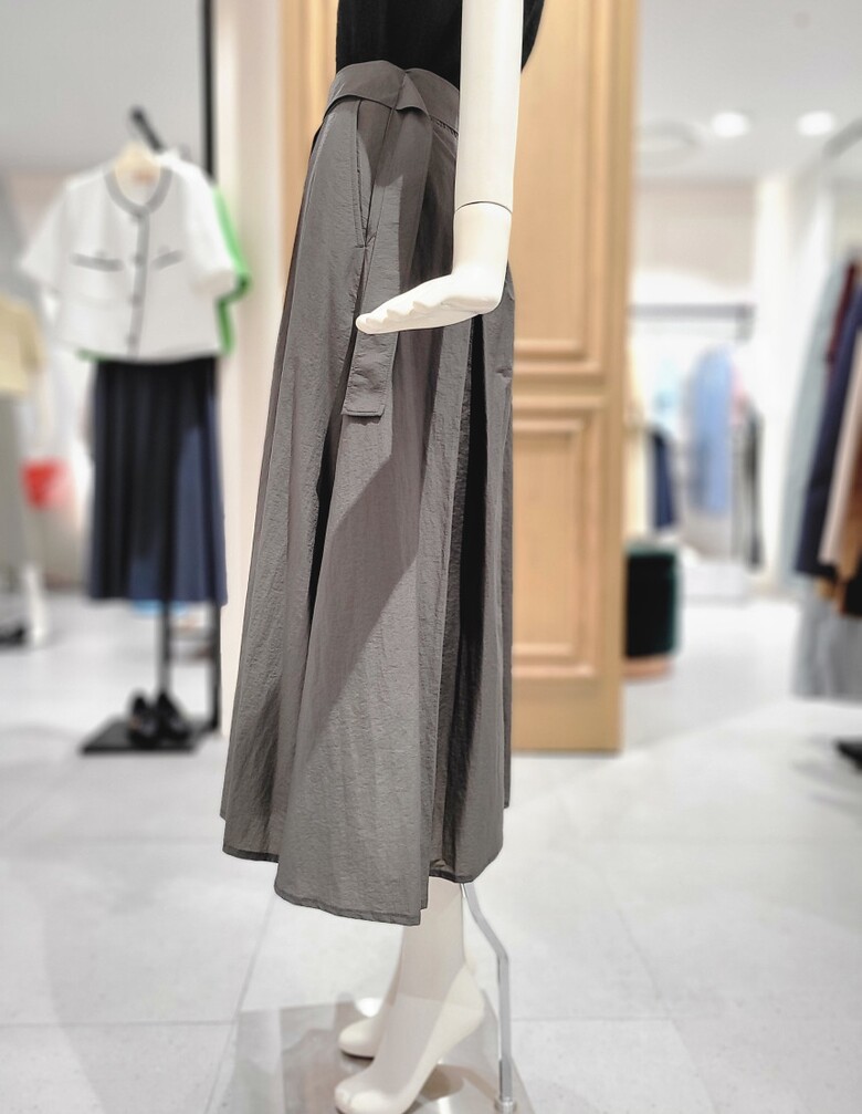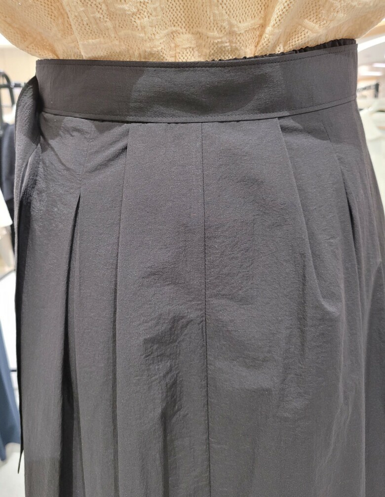 핀턱 백 밴딩 벨트 플레어 롱 스커트