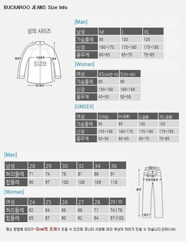 *사이즈 측정 방법에 따라 1~2CM 정도의 차이가 발생할 수 있습니다