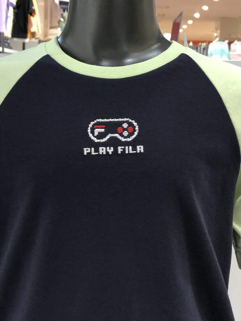 - 게이밍 그래픽이 프린트 및 자수로 들어간 반팔 티셔츠