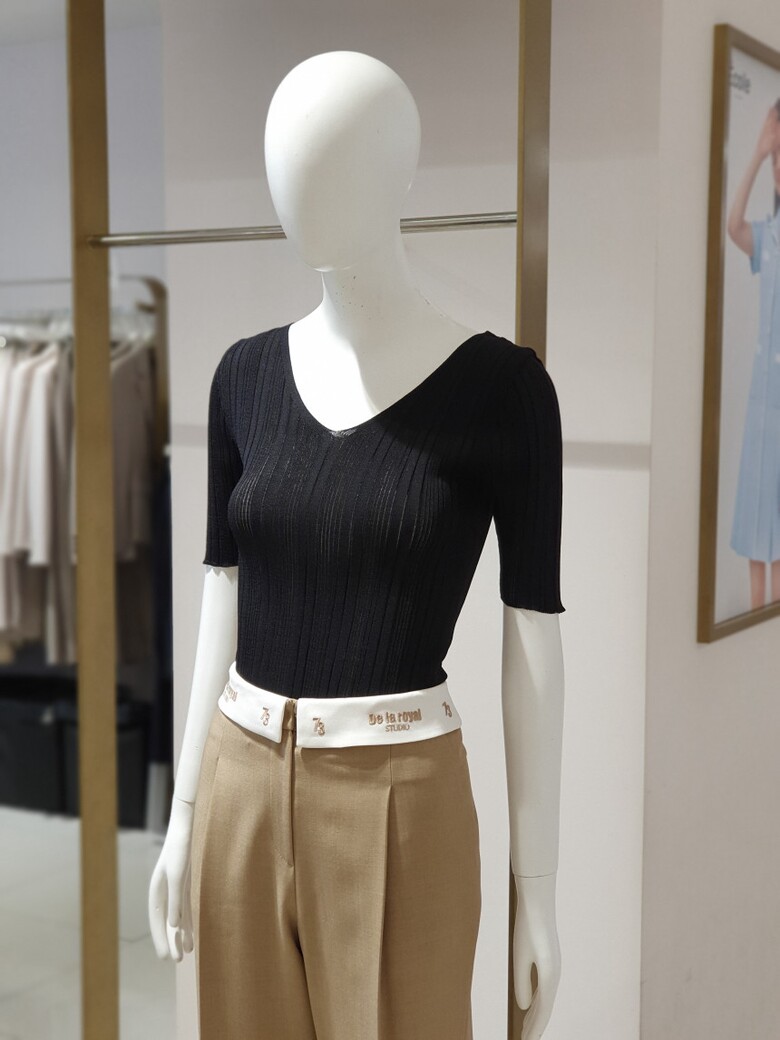 브이 넥 골지 반팔니트 S81RB37KKBS81Z
