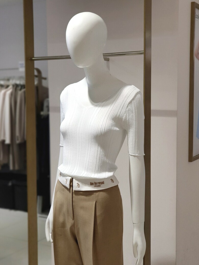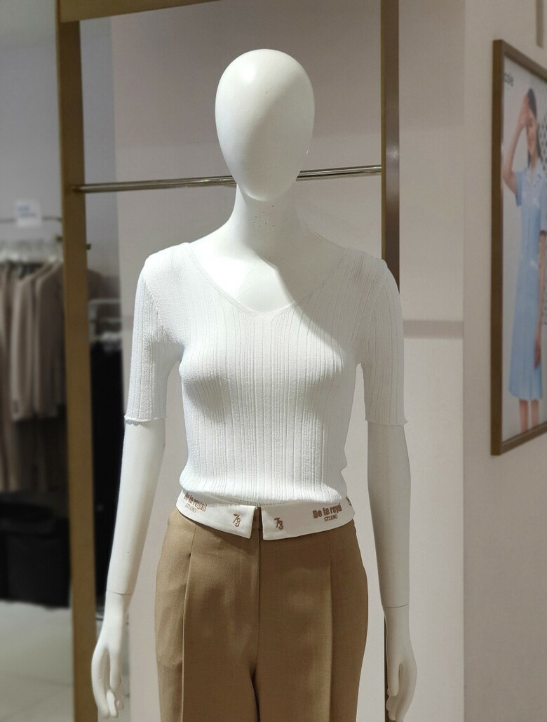 하프 슬리브 디자인이 청량한 시즌감을 연출합니다.