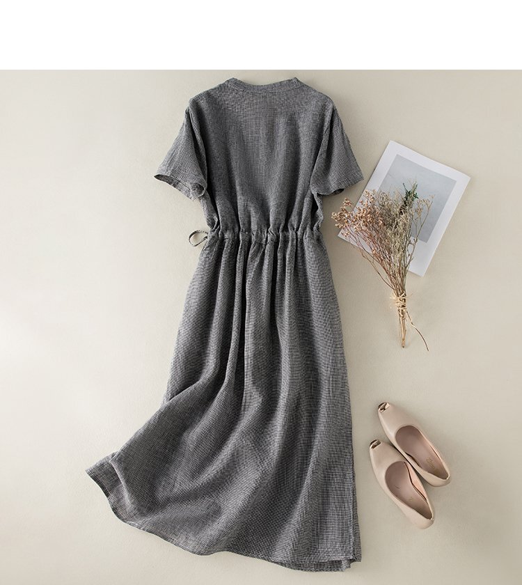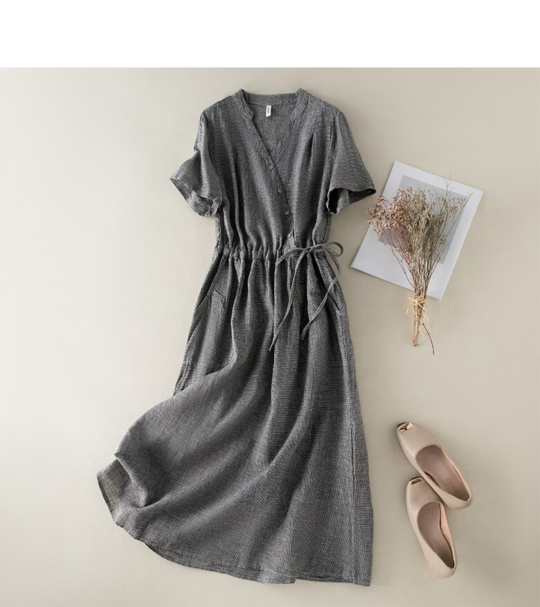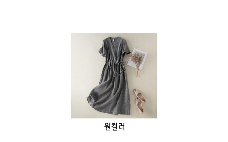 플랩 코튼린넨 허리셔링 원피스