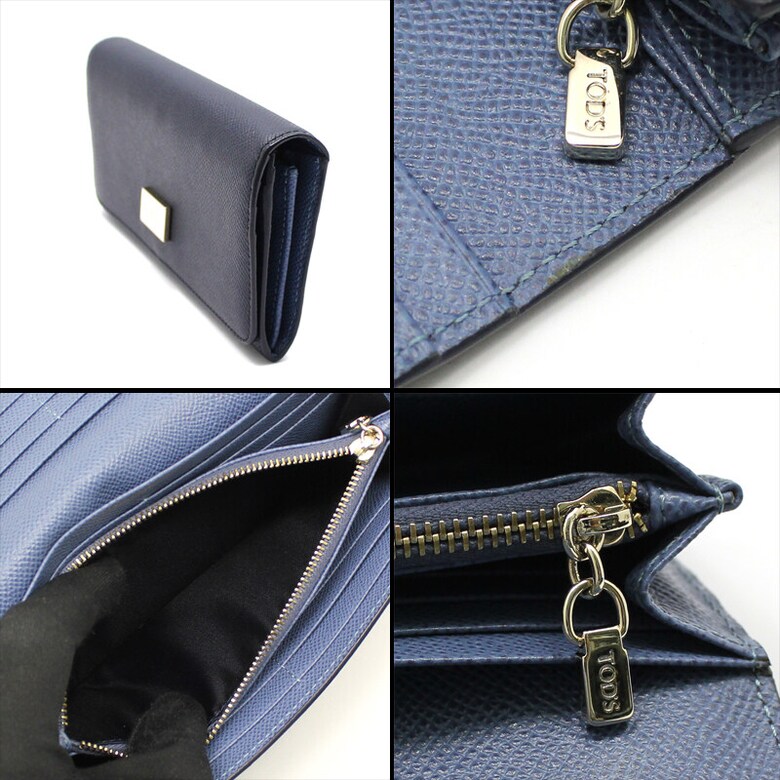 [중고명품] 토즈 네이비 레더 은장 플랩 장지갑