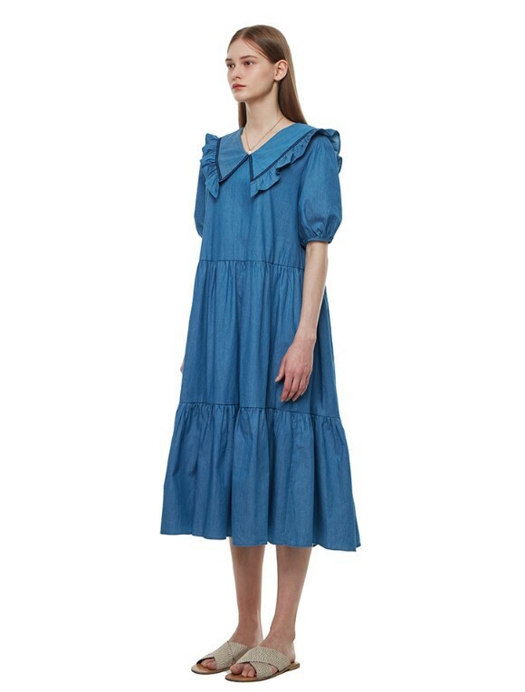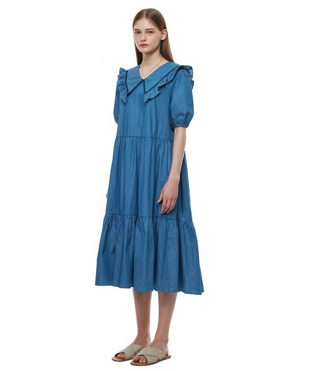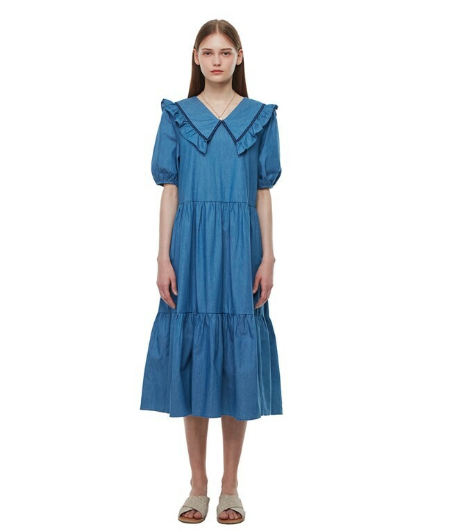 프릴 빅카라 디테일이 포인트인 원피스입니다.