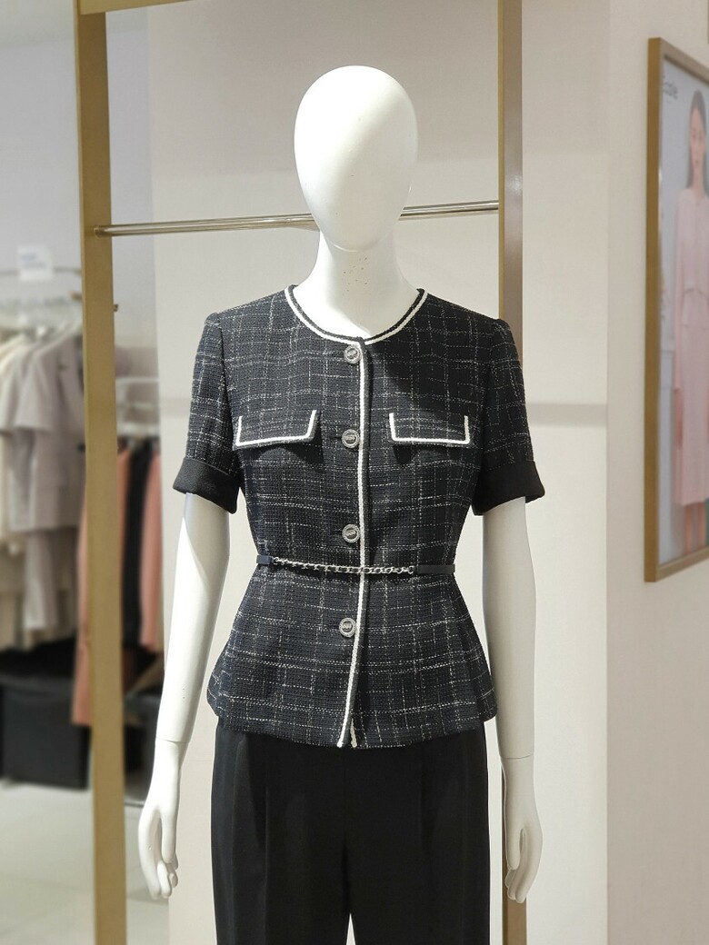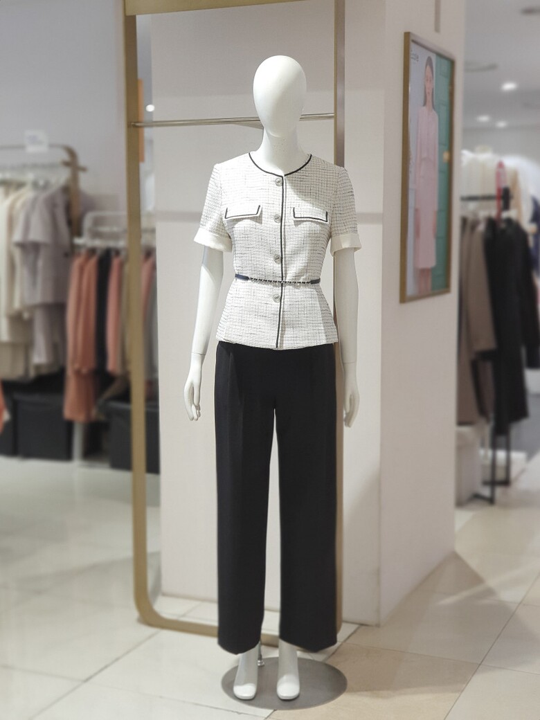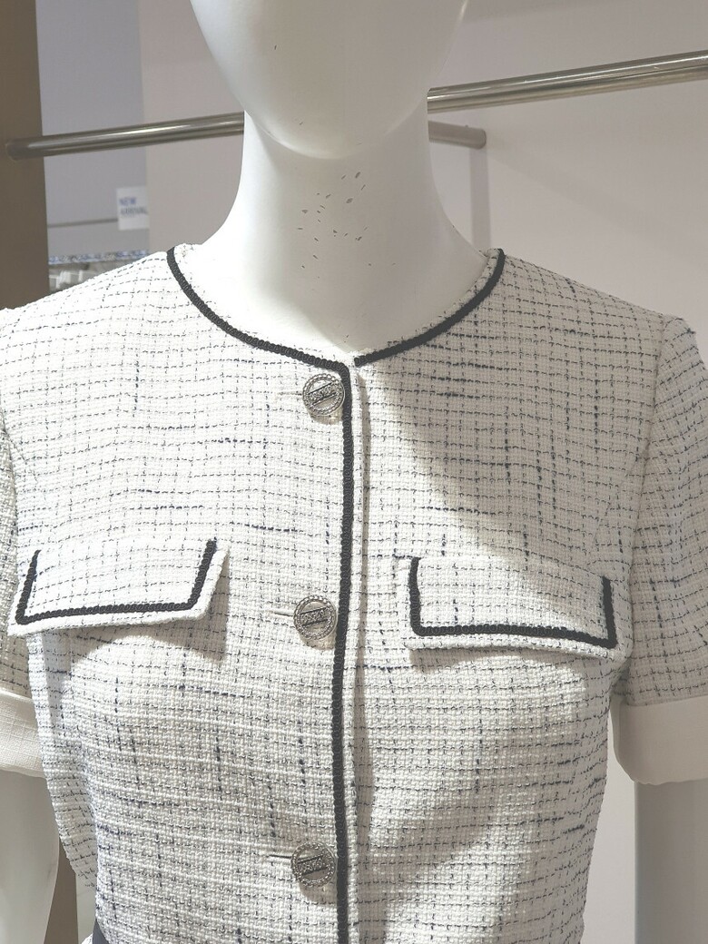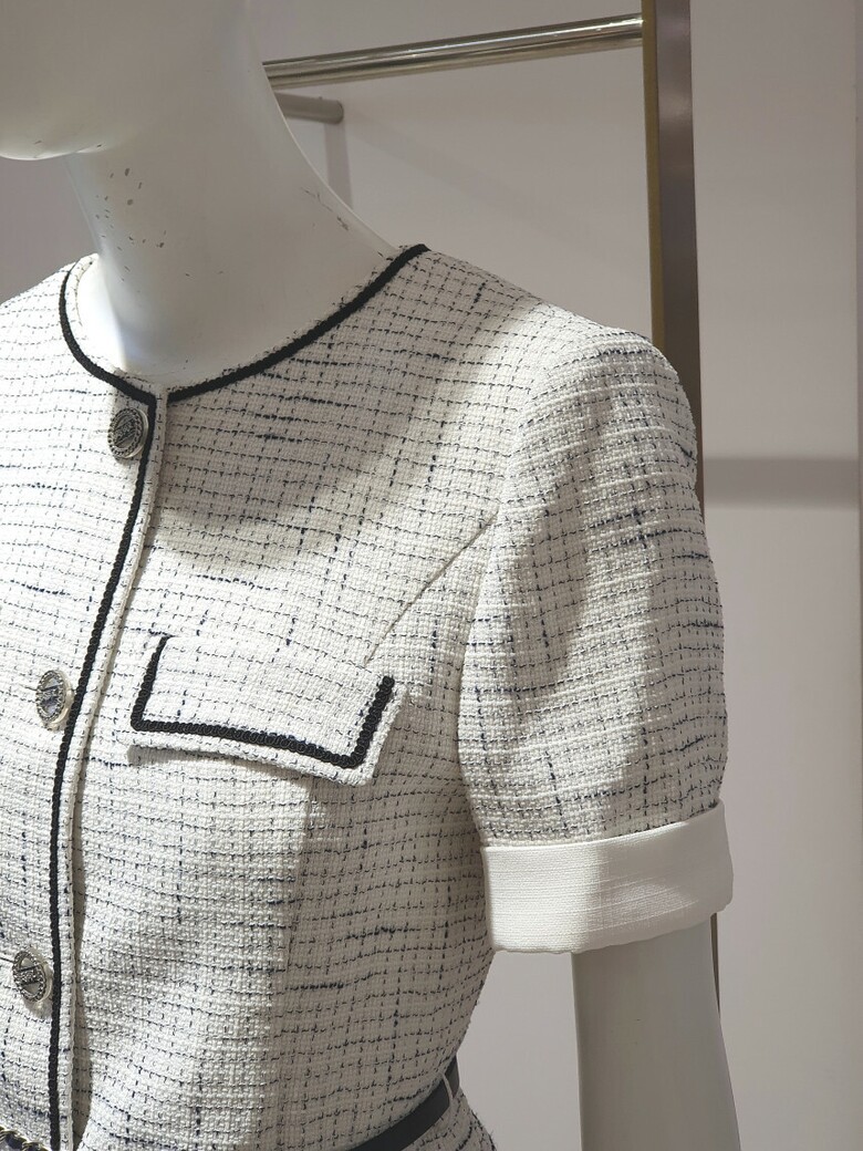 네크라인을 따라 배색 디테일로 맵시를 더해주는 재킷입니다.
