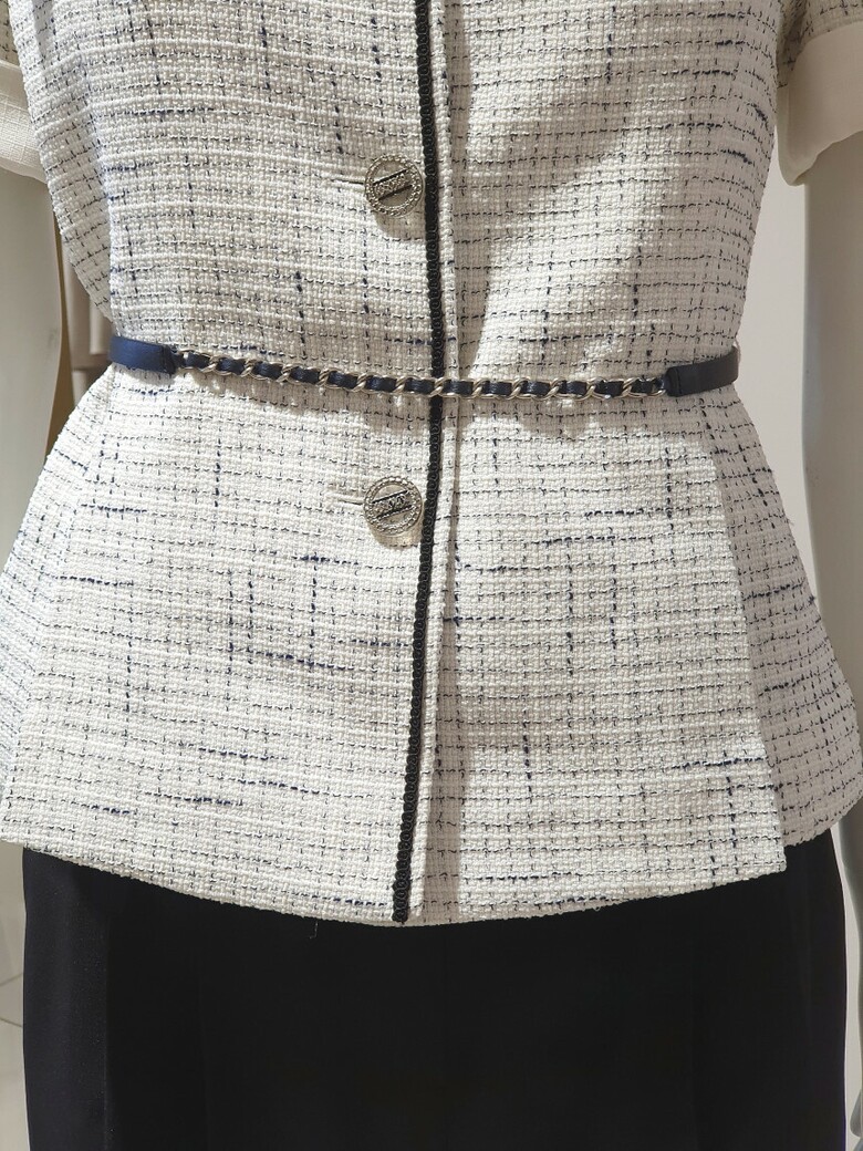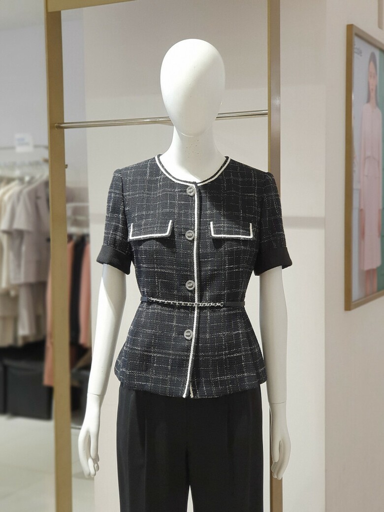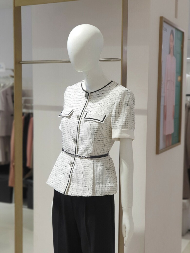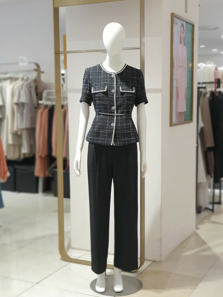 네크라인을 따라 배색 디테일로 맵시를 더해주는 재킷입니다.