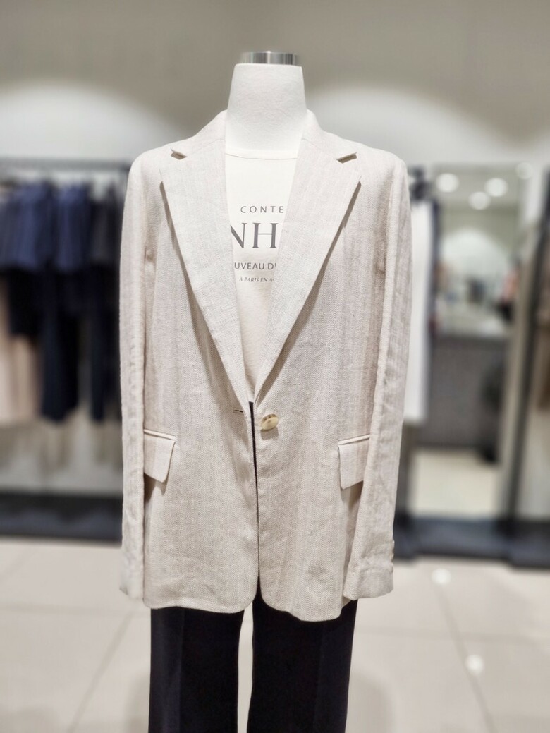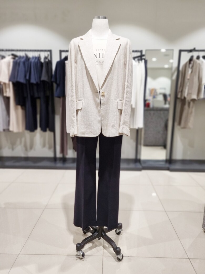 | 1. 제품 소재 (섬유의 조성 또는 혼용률을 백분율로 표시, 기능성인 경우 성적서 또는 허가서) | 겉감:마 52%, 면 48% / 배색1:마 88%, 레이온 12% / 배색2:폴리에스 |