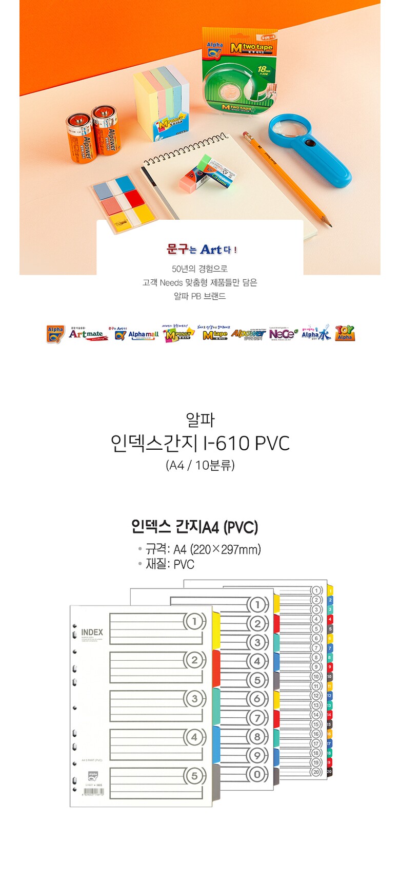 [알파] 인덱스간지 I-610 PVC 10분류 A4