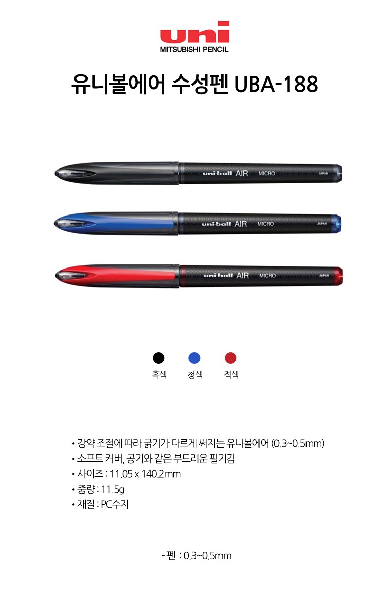 [유니] 수성펜 유니볼에어 UBA-188-M(0.5mm)(낱개)