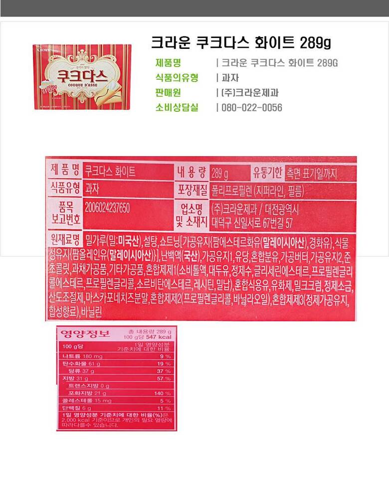 [크라운] 쿠크다스 화이트토르테 (289g)