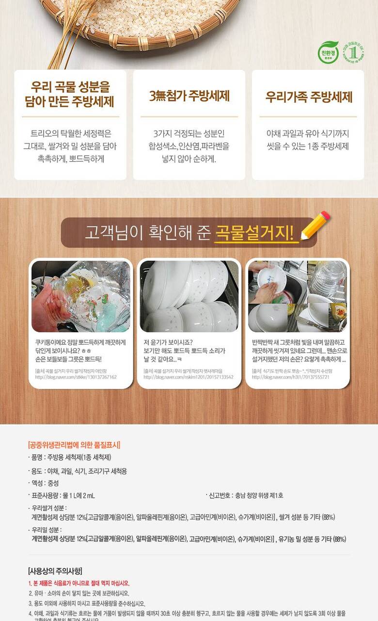 [KW트리오] 주방세제 곡물설거지우리쌀겨 (750ml)