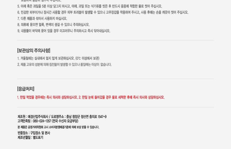 7. 세탁방법 및 취급시 주의사항 | 상세페이지 참조 |