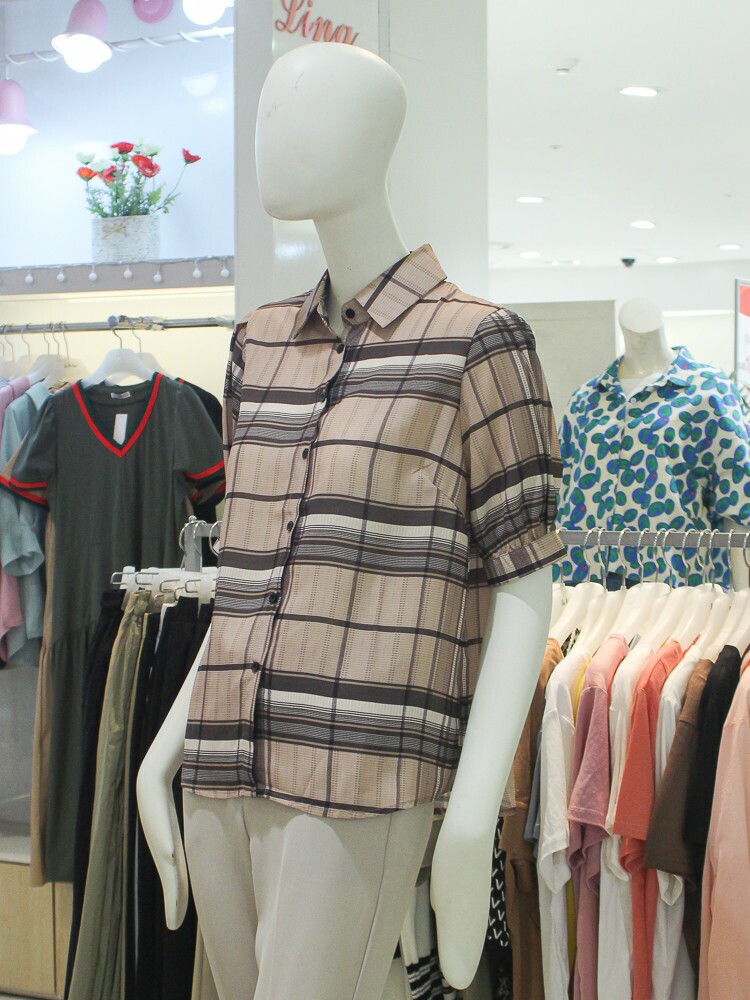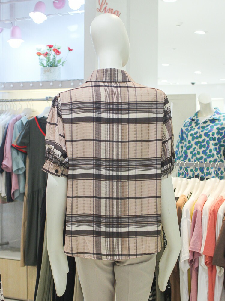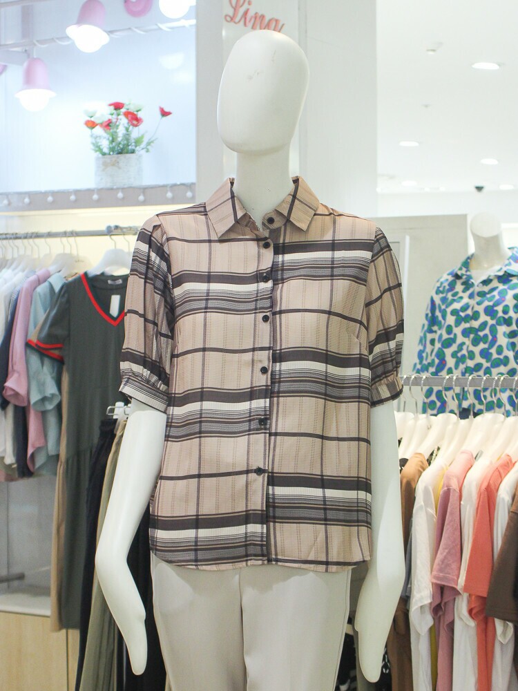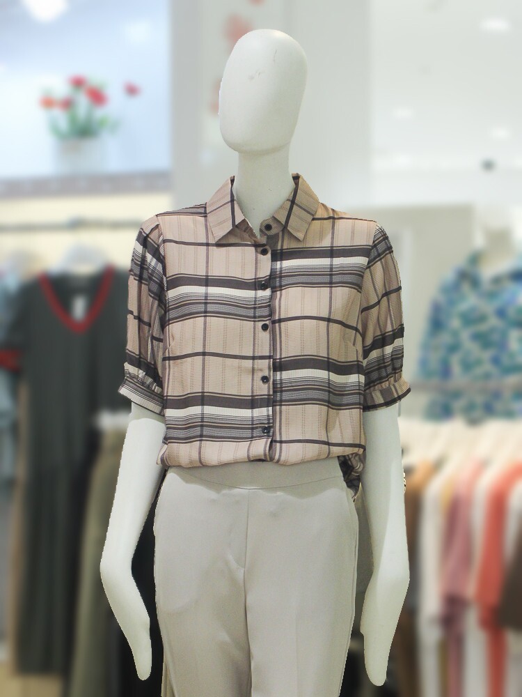 [리나와보나]체크 쉬폰 셔츠 블라우스(LB0232-1037)