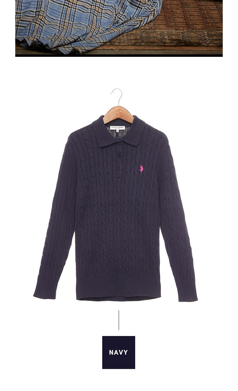 USPA 화이트라벨 케이블 카라 여성 니트(네이비)_WP21-KT409NV