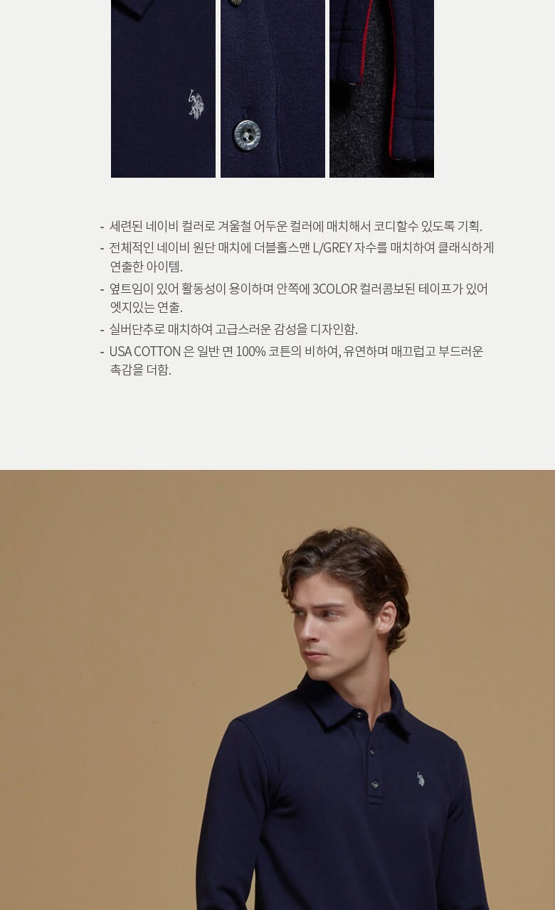 USPA 화이트라벨 USA코튼 남성 기모 카라티셔츠(네이비)_CMP20-TS402NV