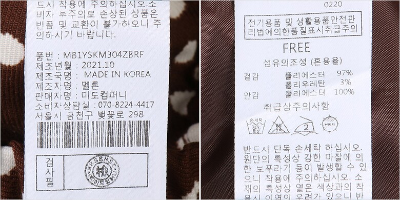 | 6. 세탁방법 및 취급시 주의사항 | 상세페이지 참조 |