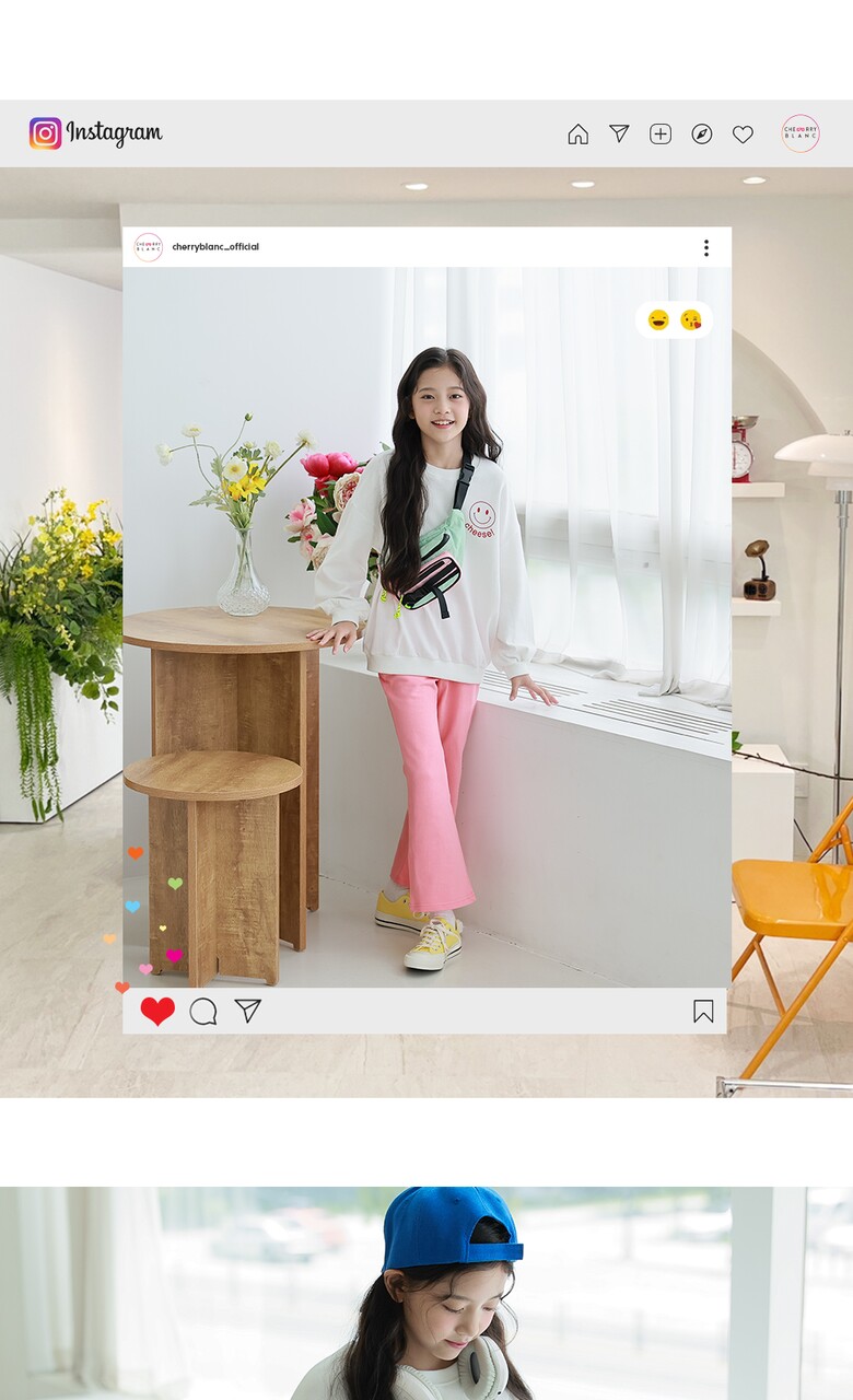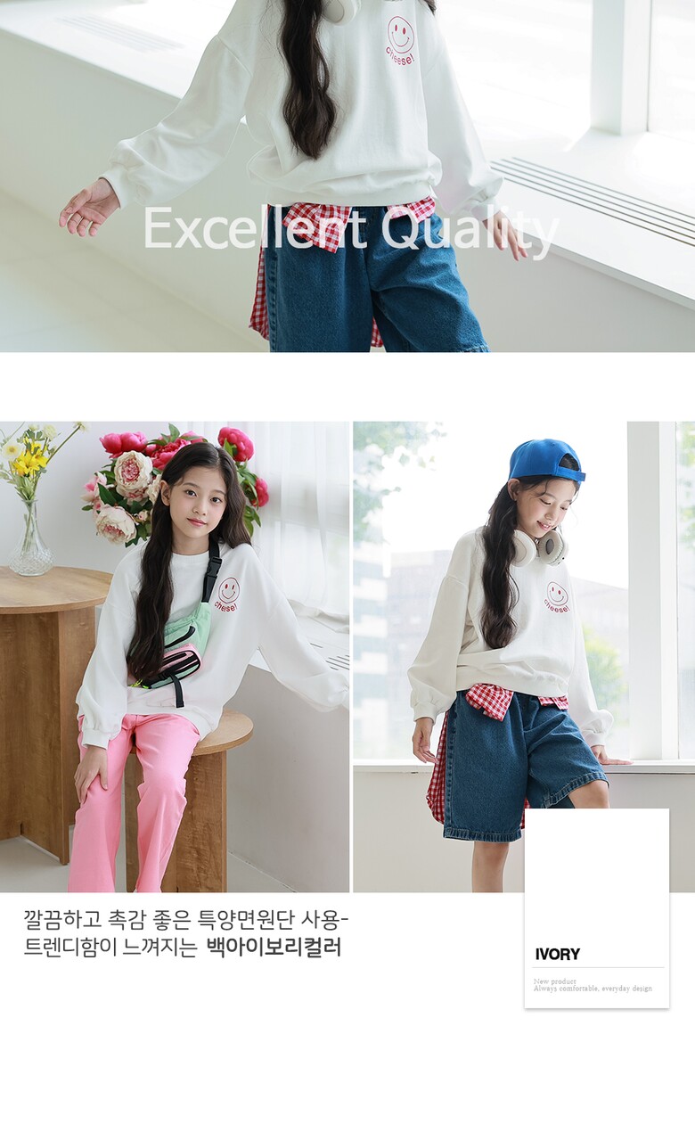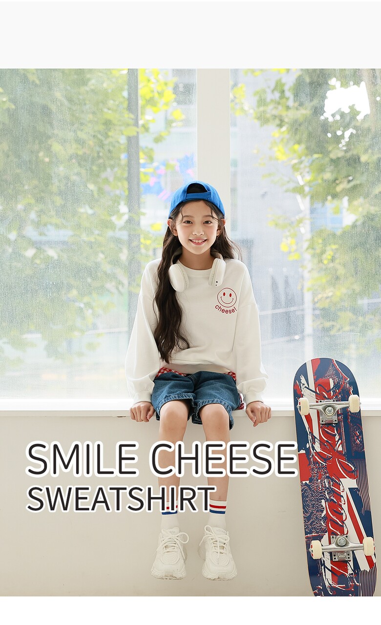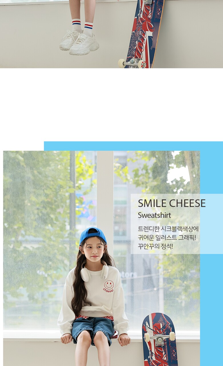 체리블랑 스마일치즈맨투맨 여아,키즈,주니어