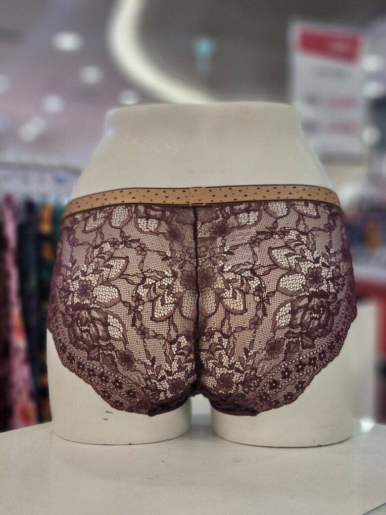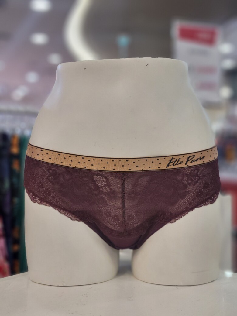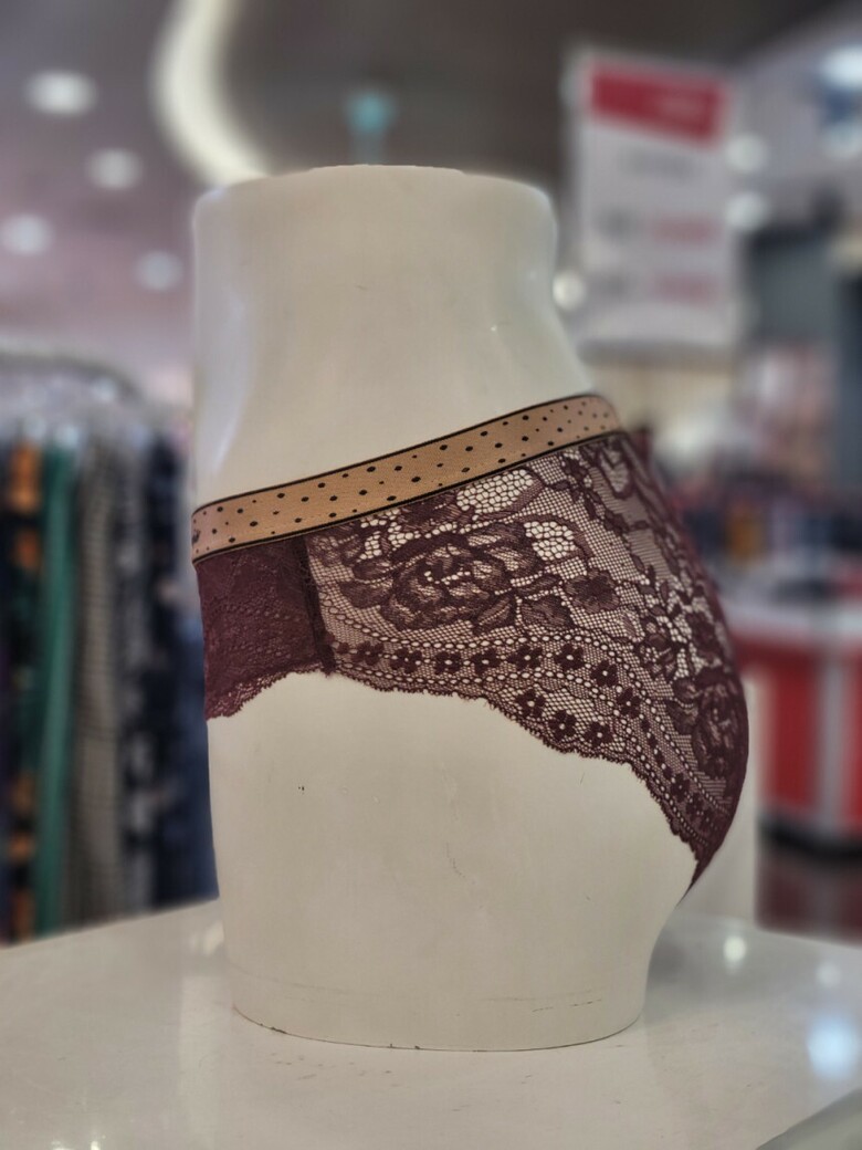 와인 컬러의 샴페인 골드 밴드 레이스 여성 팬티입니다.