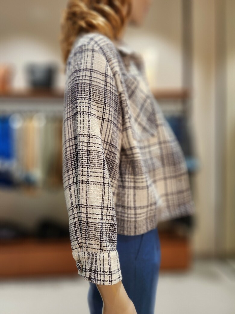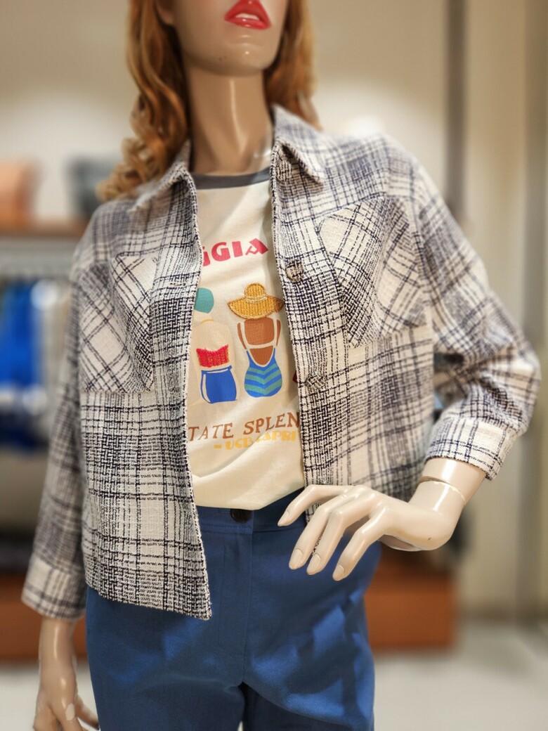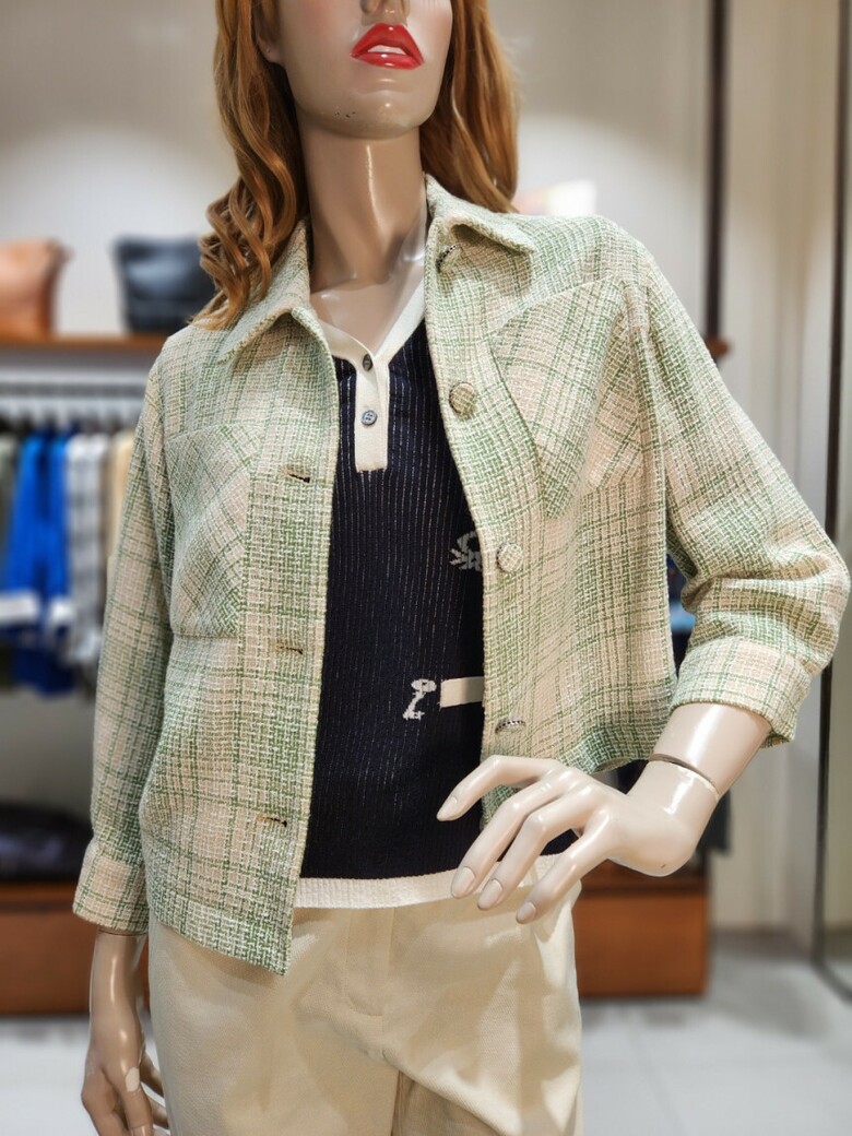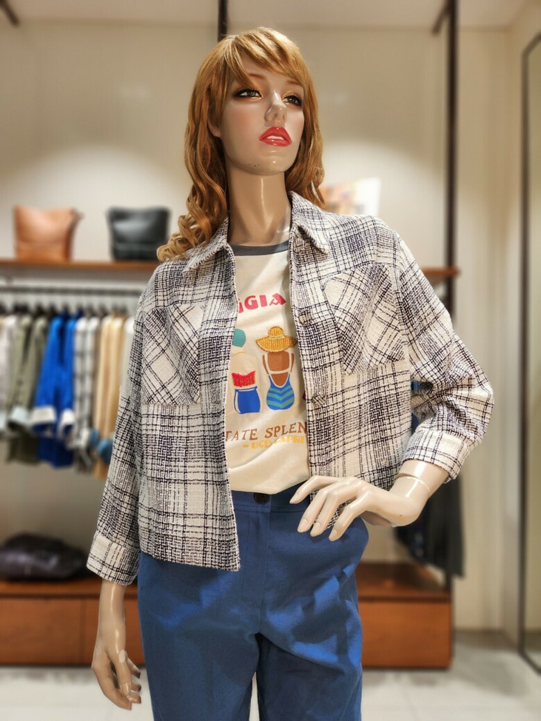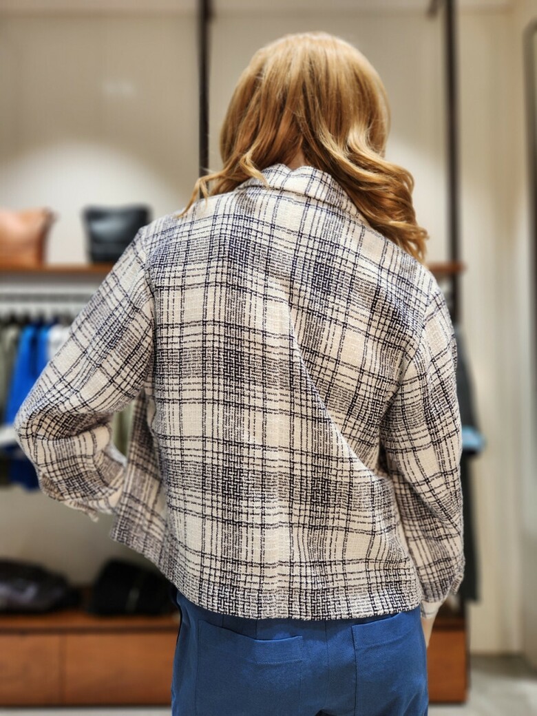 컬러풀한 트위드 짜임의 숏기장 점퍼입니다