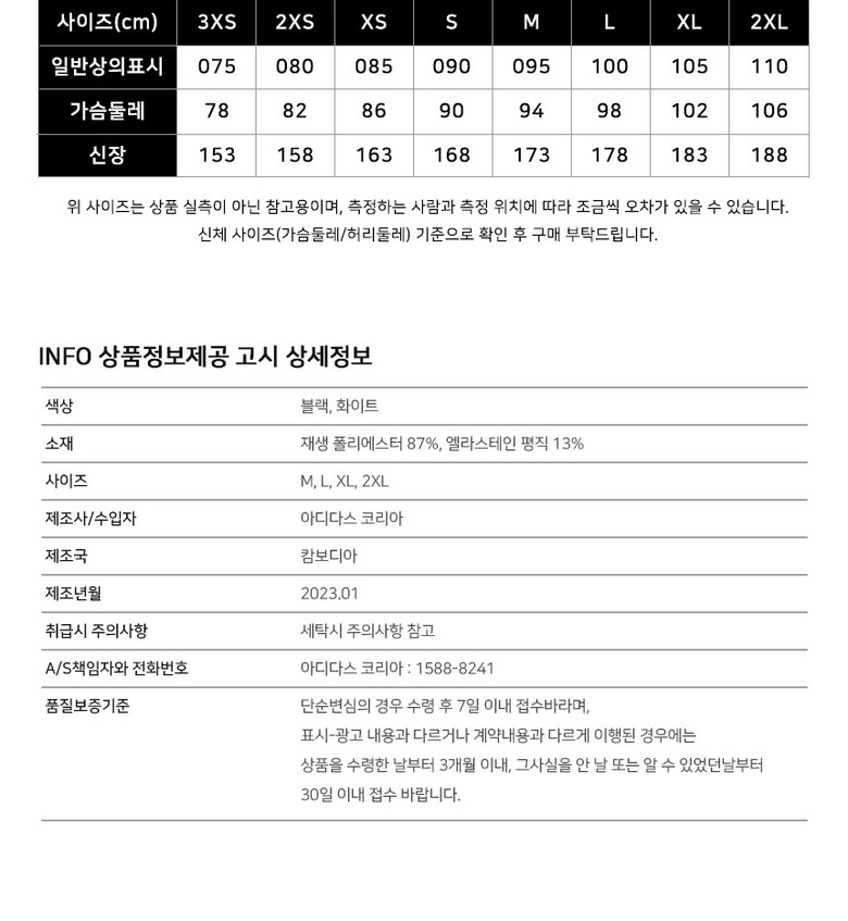 | 9. A/S 책임자와 전화번호 | 아디다스코리아/1588-8241 |