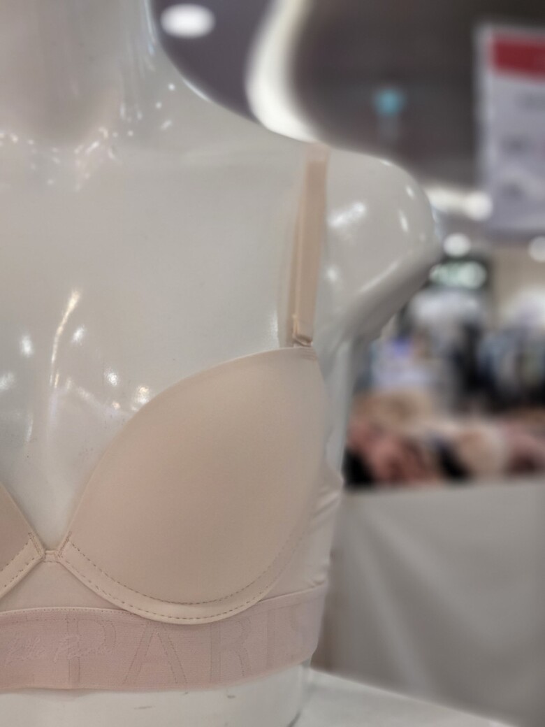 스킨 컬러의 마이크로 로고 여성 브라입니다.