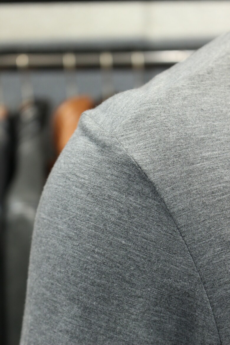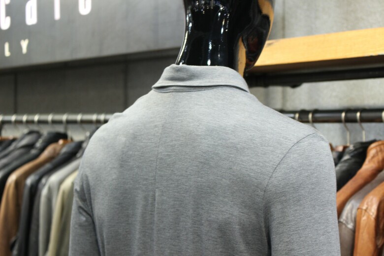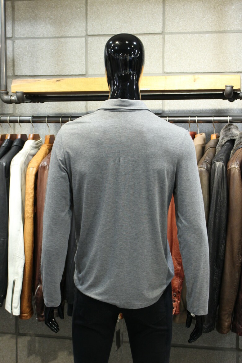 기본3버튼카라티디자인에 좌측어깨와 옆구리에 비대칭으로 절개디테일을 넣어 포인트를 주었습니다