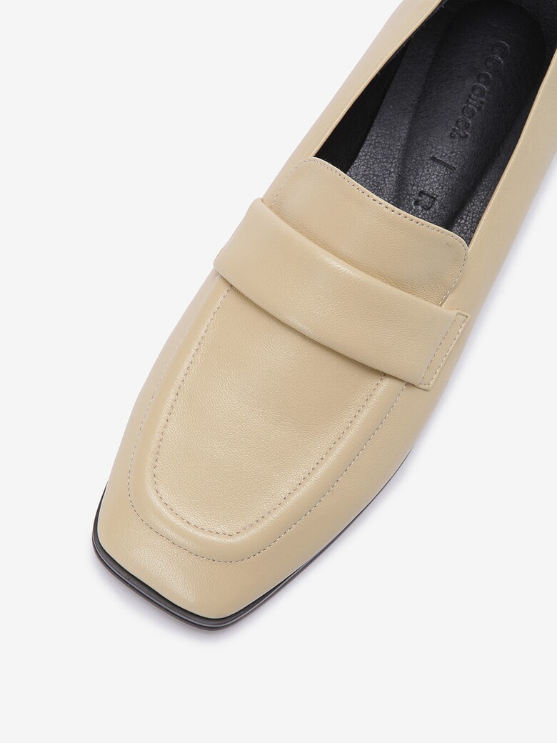 - 깔끔하게 떨어지는 스퀘어토 디자인이 돋보이는 클래식한 무드의 로퍼입니다.