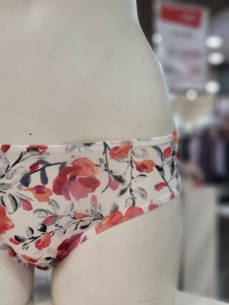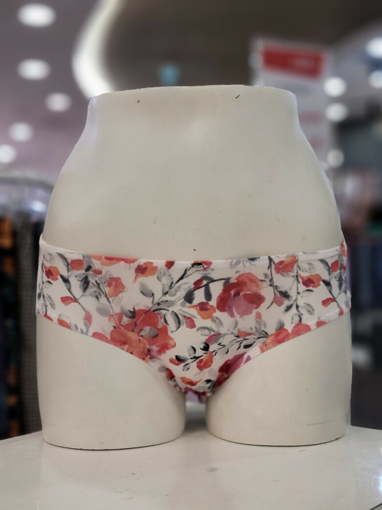 레드 컬러의 플라워 나염 여성 팬티입니다.