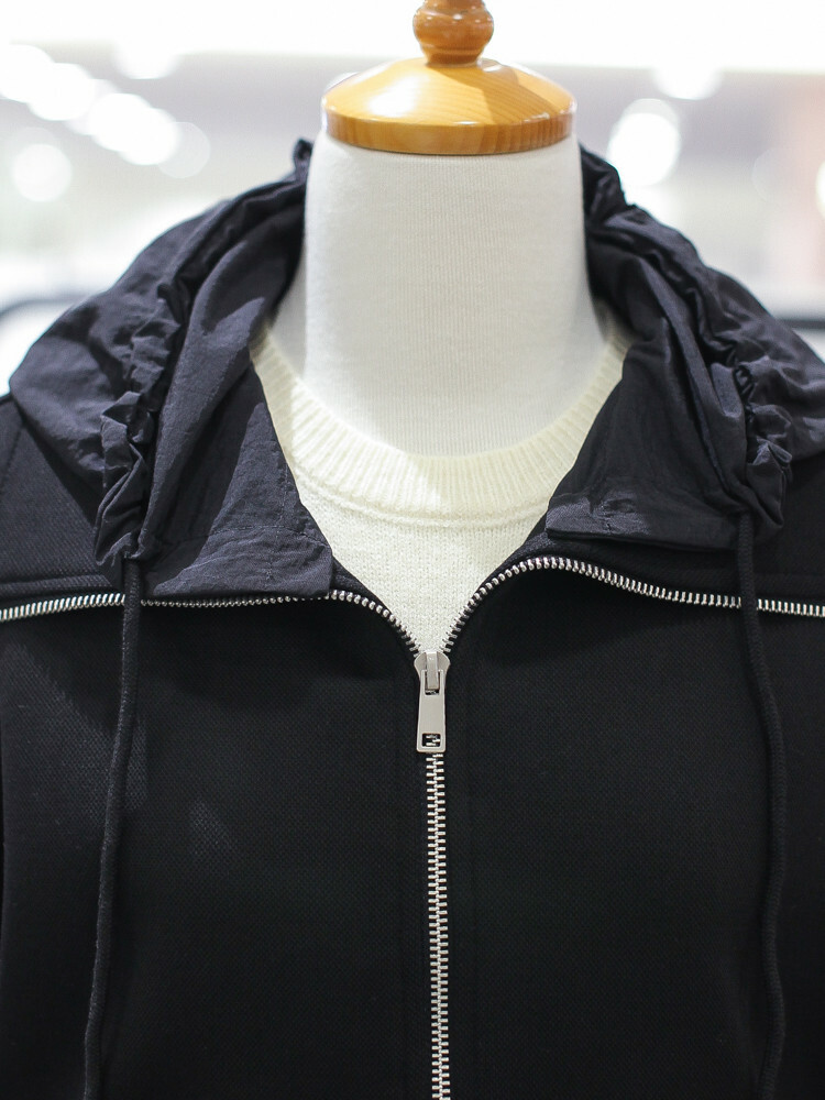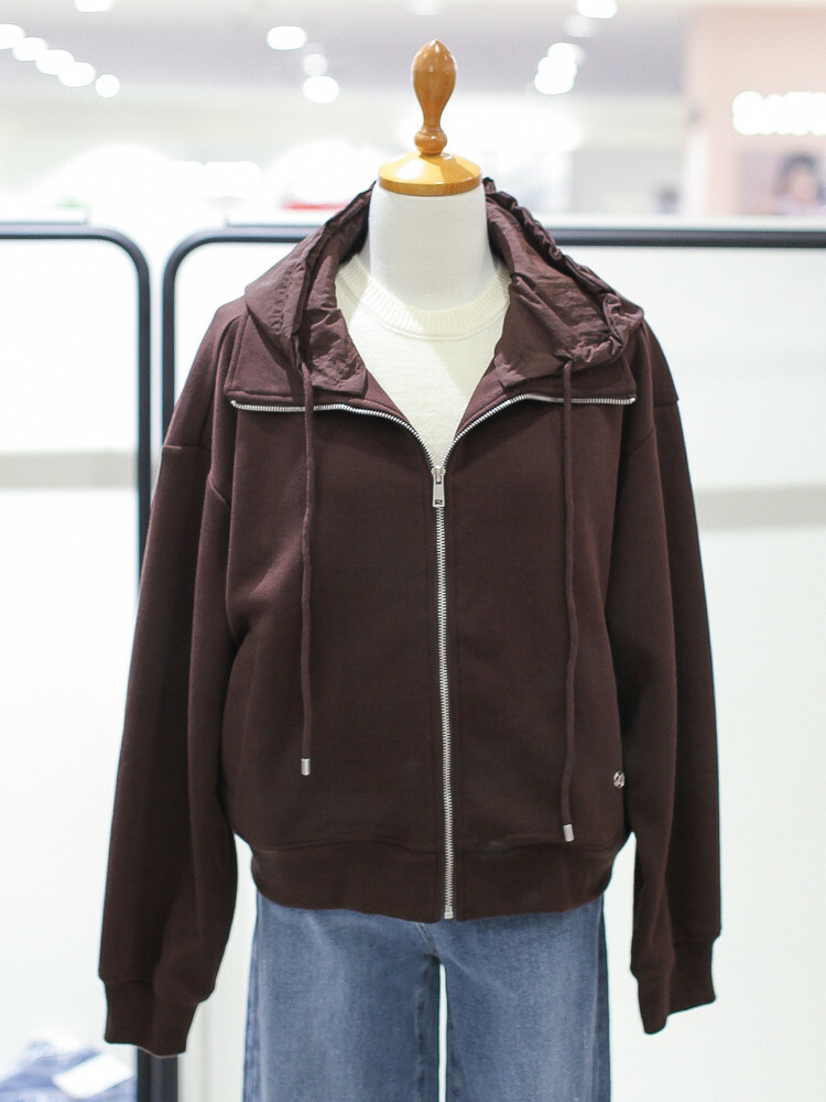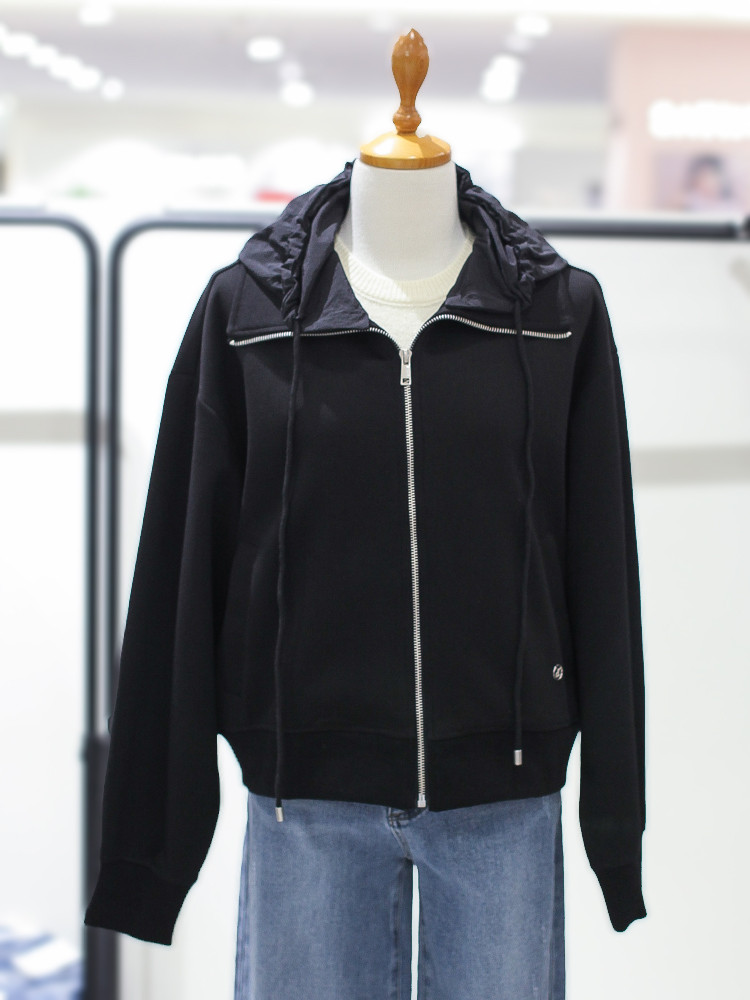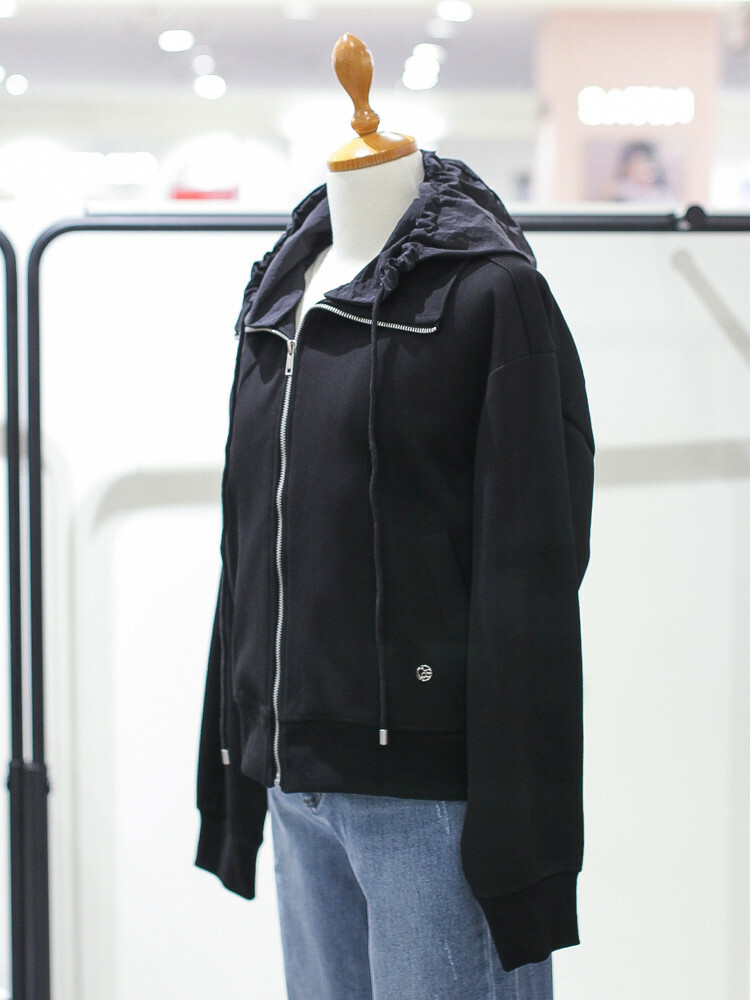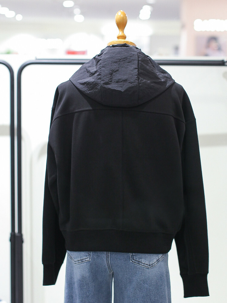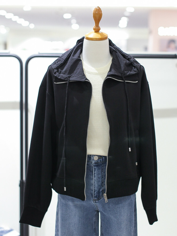 탈부착 가능한 후드 디자인의 집업 점퍼입니다