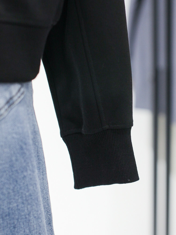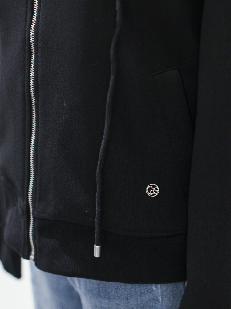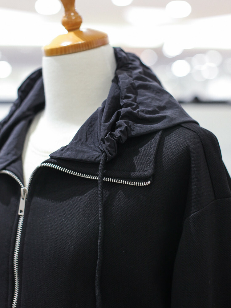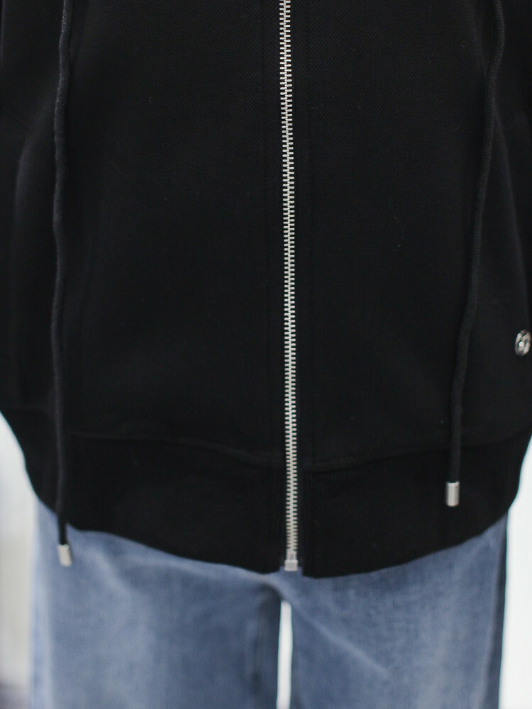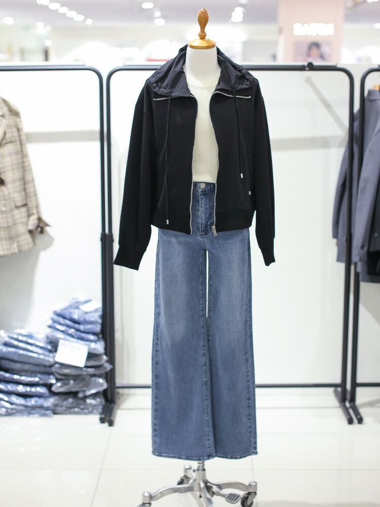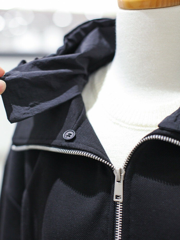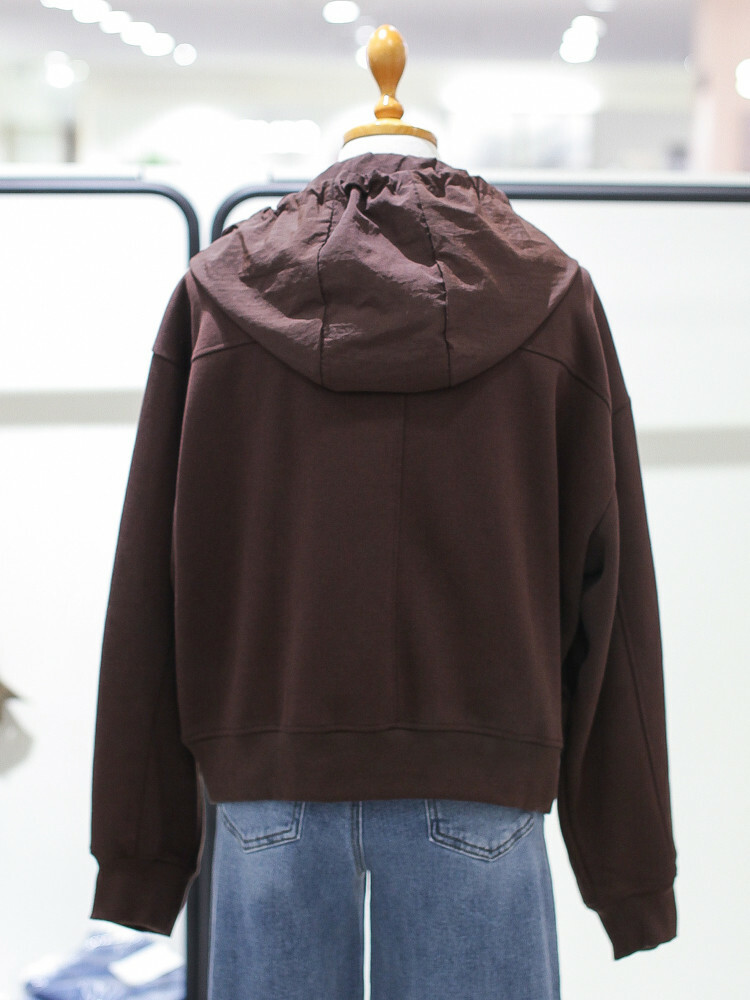 탈부착 가능한 후드 디자인의 집업 점퍼입니다