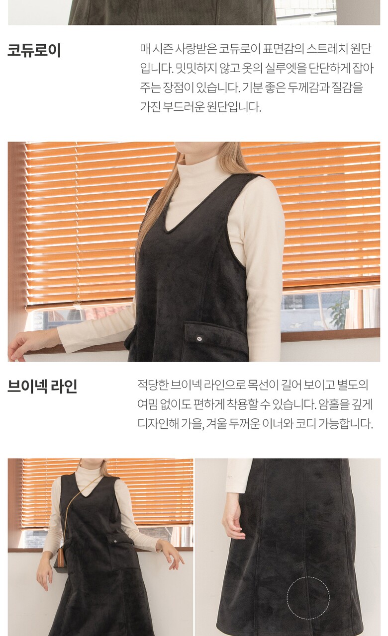 뒤란 코듀로이 카고 브이넥 융기모 원피스 DTF3W-5107 2colors