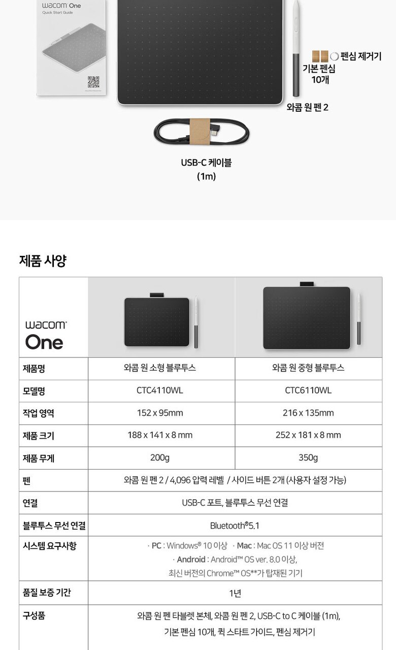 와콤원 CTC-6110WL 중형 블루투스 펜 타블렛