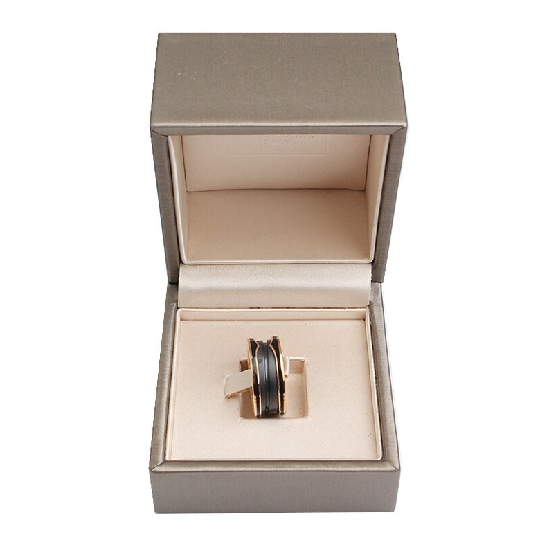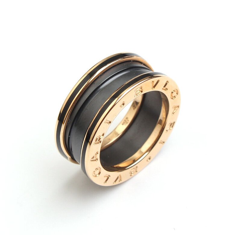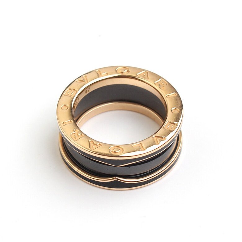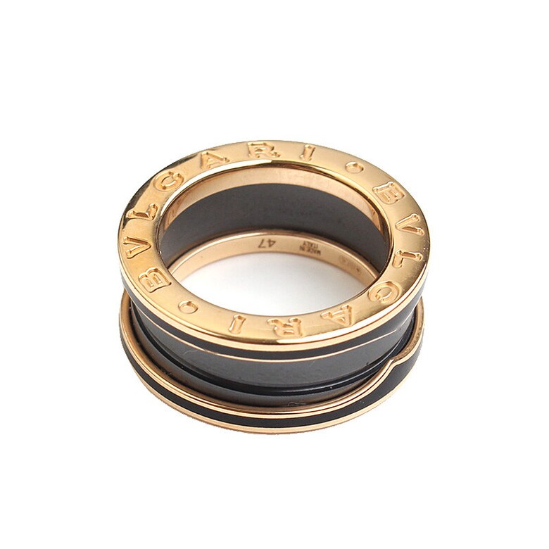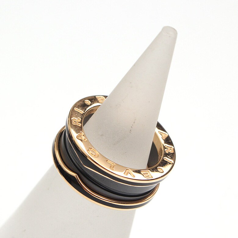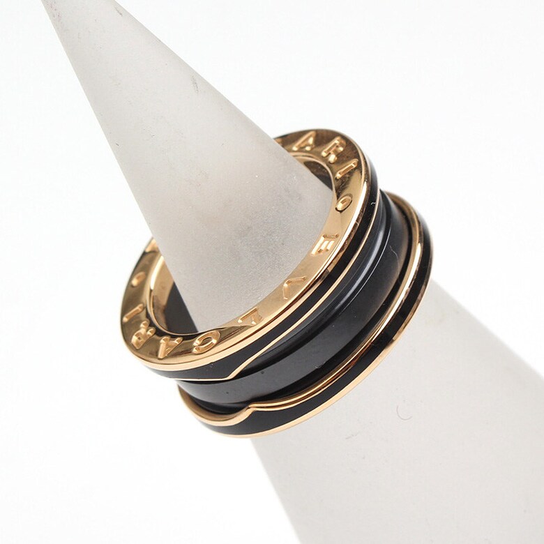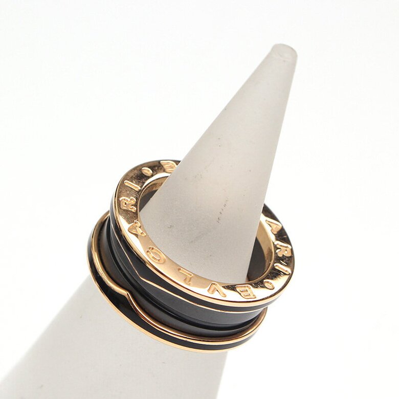 [중고명품] 불가리 비제로원 750 핑크골드 블랙 세라믹 2링 반지 7호