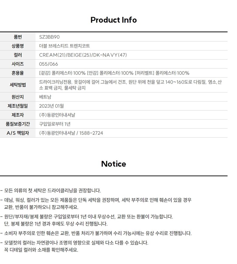• 처음 배송된 상품상태와 다를 경우(세탁/착용 후 외출하신 경우) 반품이 불가합니다.