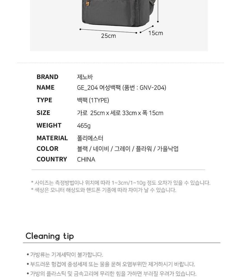 레네 여성 가벼운 경량 데일리 방수 백팩 가방 8289