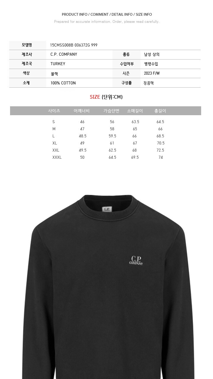 CP 23FW 로고 자수 크루넥 기모 맨투맨 블랙 15CMSS008B 006372G 999