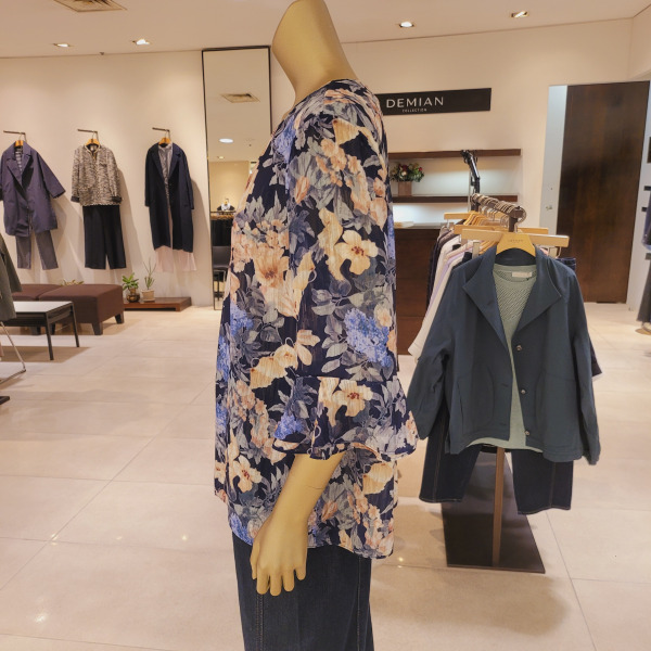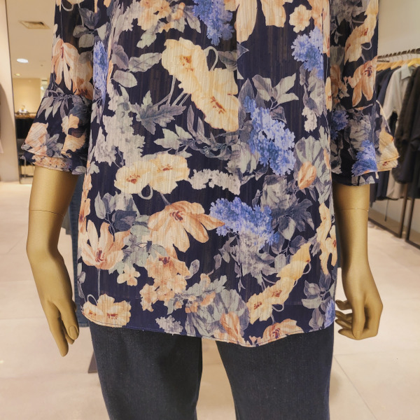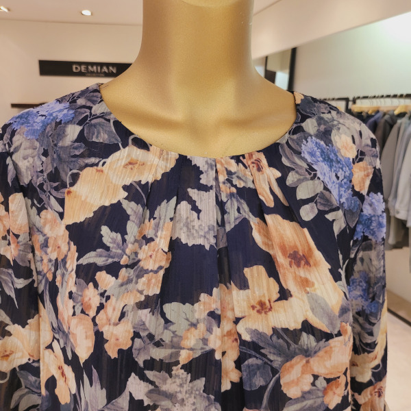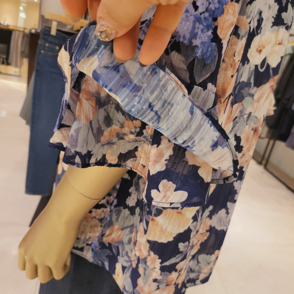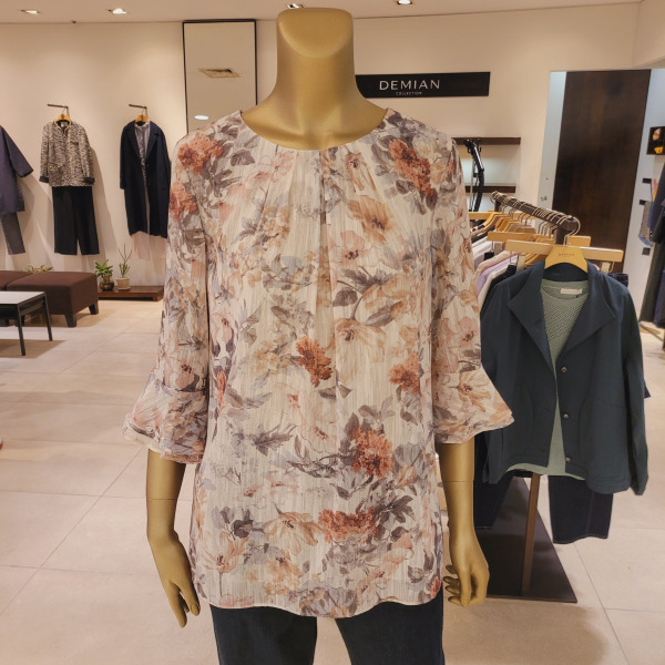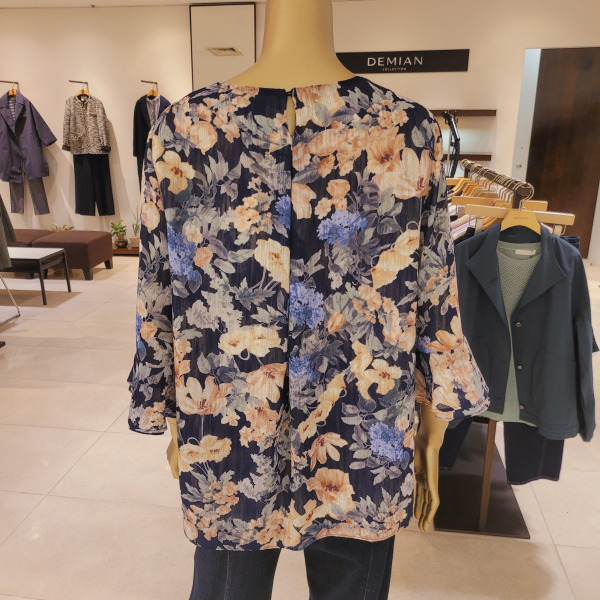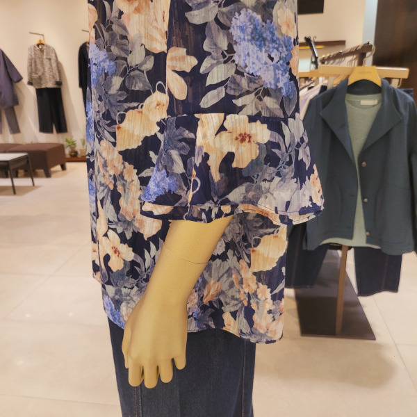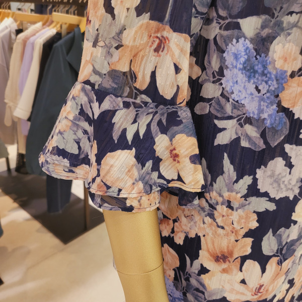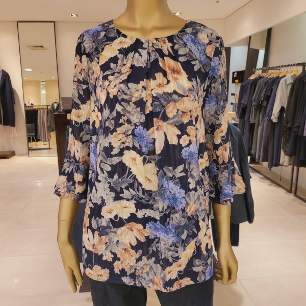 DH42506_프릴소매 핀턱 라운드넥 플라워블라우스