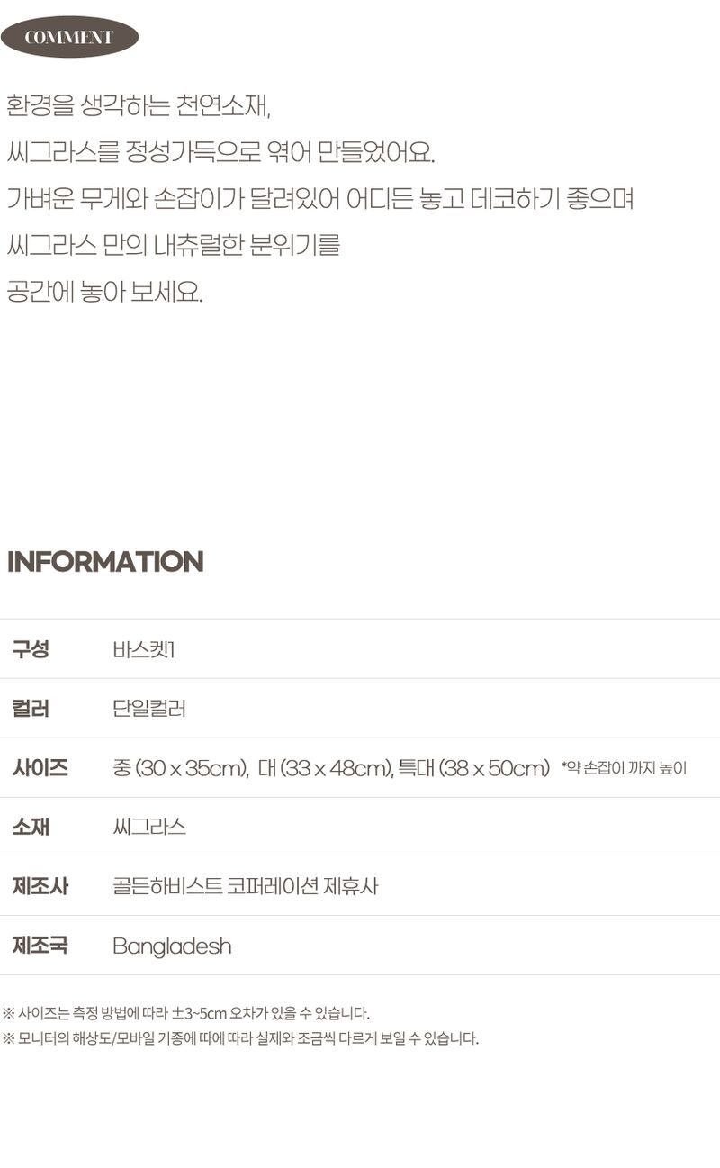 1. 품명 | 씨그라스 에코 블랙라인 수납 바스켓 3size |
